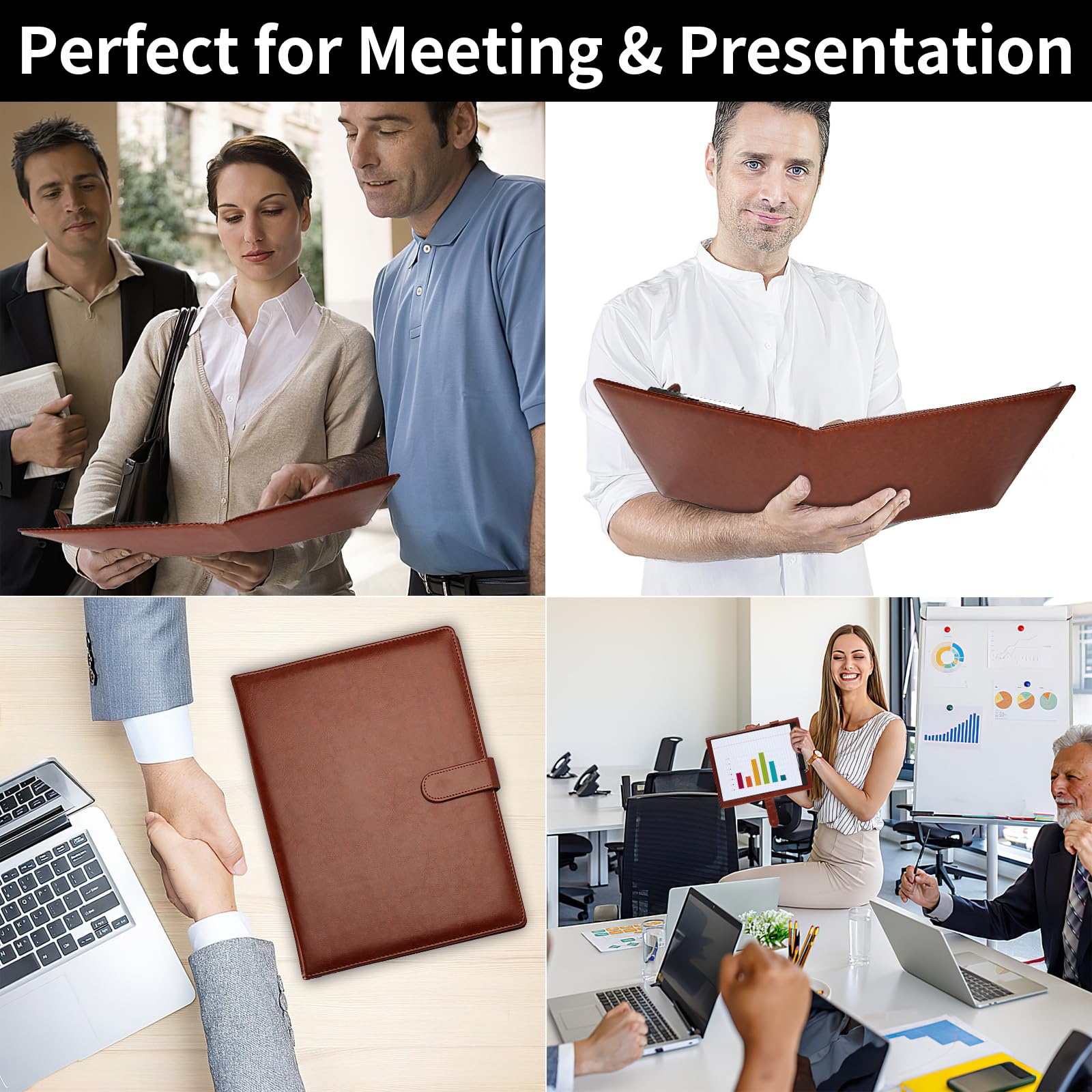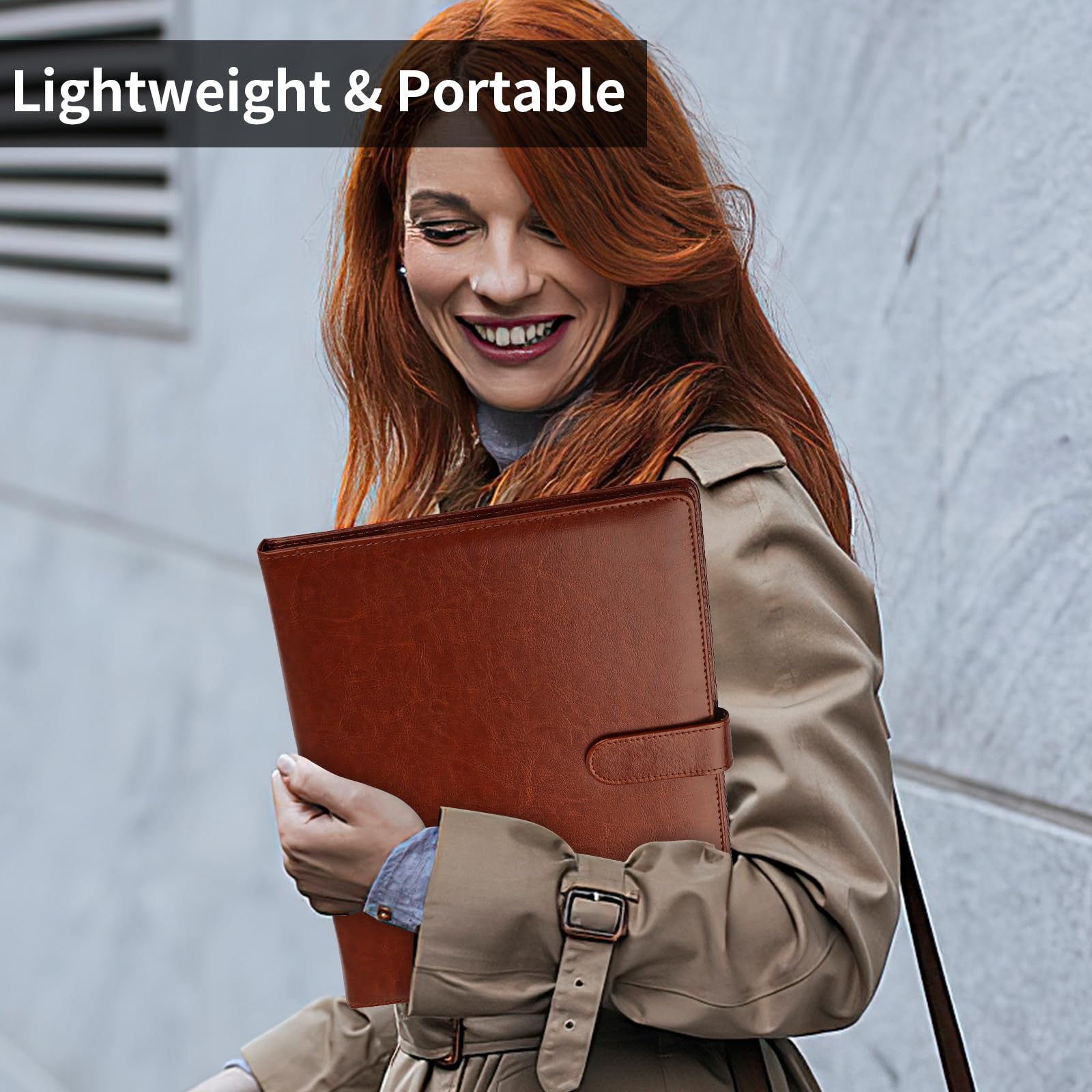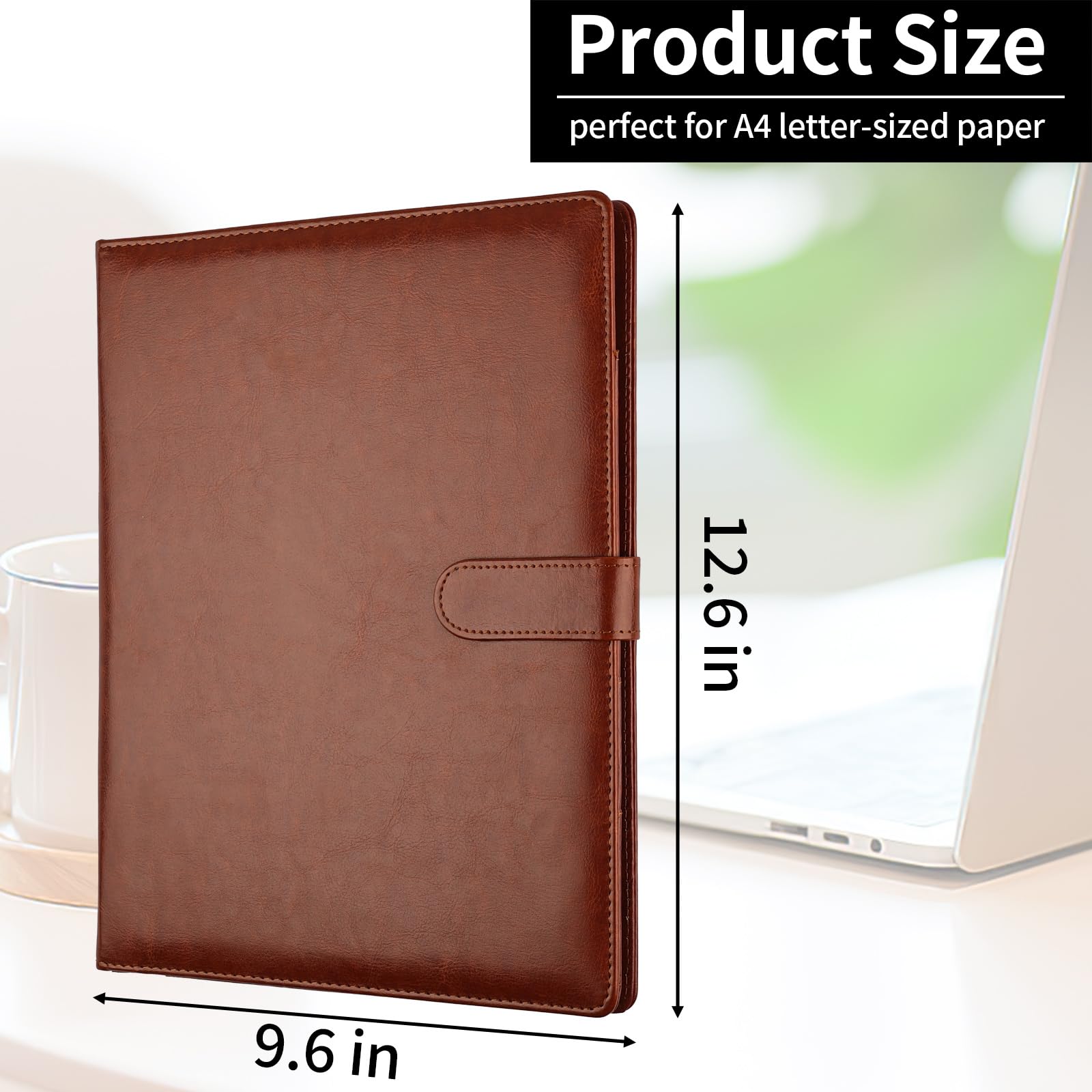 Perfect Size: The brown portfolio binder measures 9.6" x 12.6", designed to hold writing pads, A4 and letter-sized paper, ideal organizer for business, office, conference and school