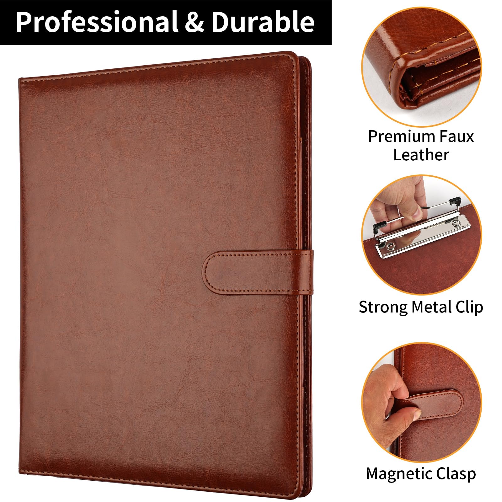Premium Faux Leather: Crafted from premium faux leather with excellent stitching, this padfolio binder is lightweight, durable, and stain-resistant, perfect for a professional look