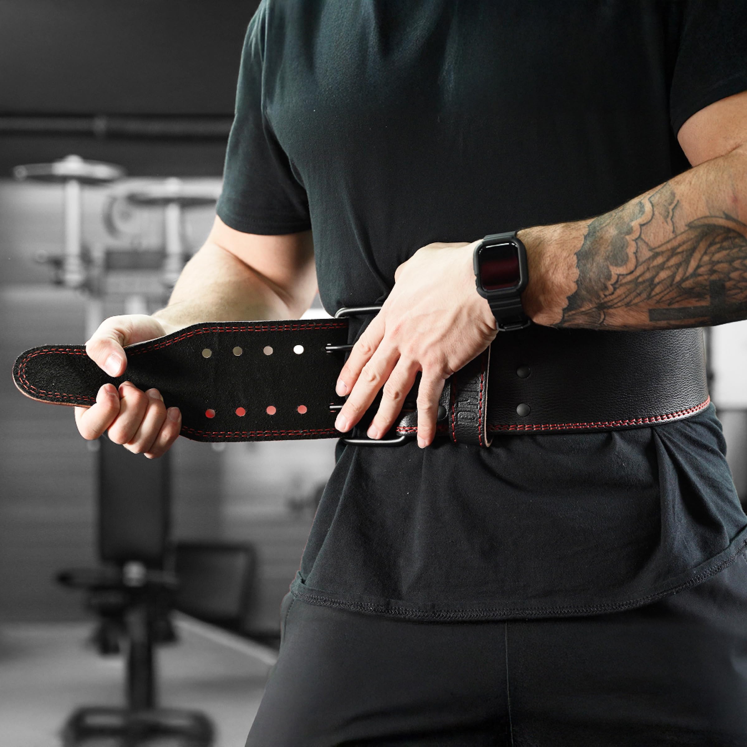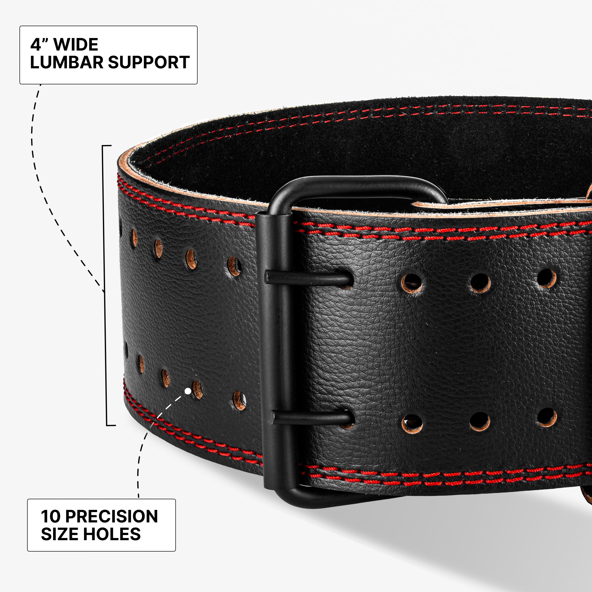 SWEAT-FREE SUEDE LEATHER: Made from premium sweat-free suede leather, this weight belt is built to last through tough workouts. The double-pronged coated buckle allows a secure, adjustable fit, staying in place for max stability.