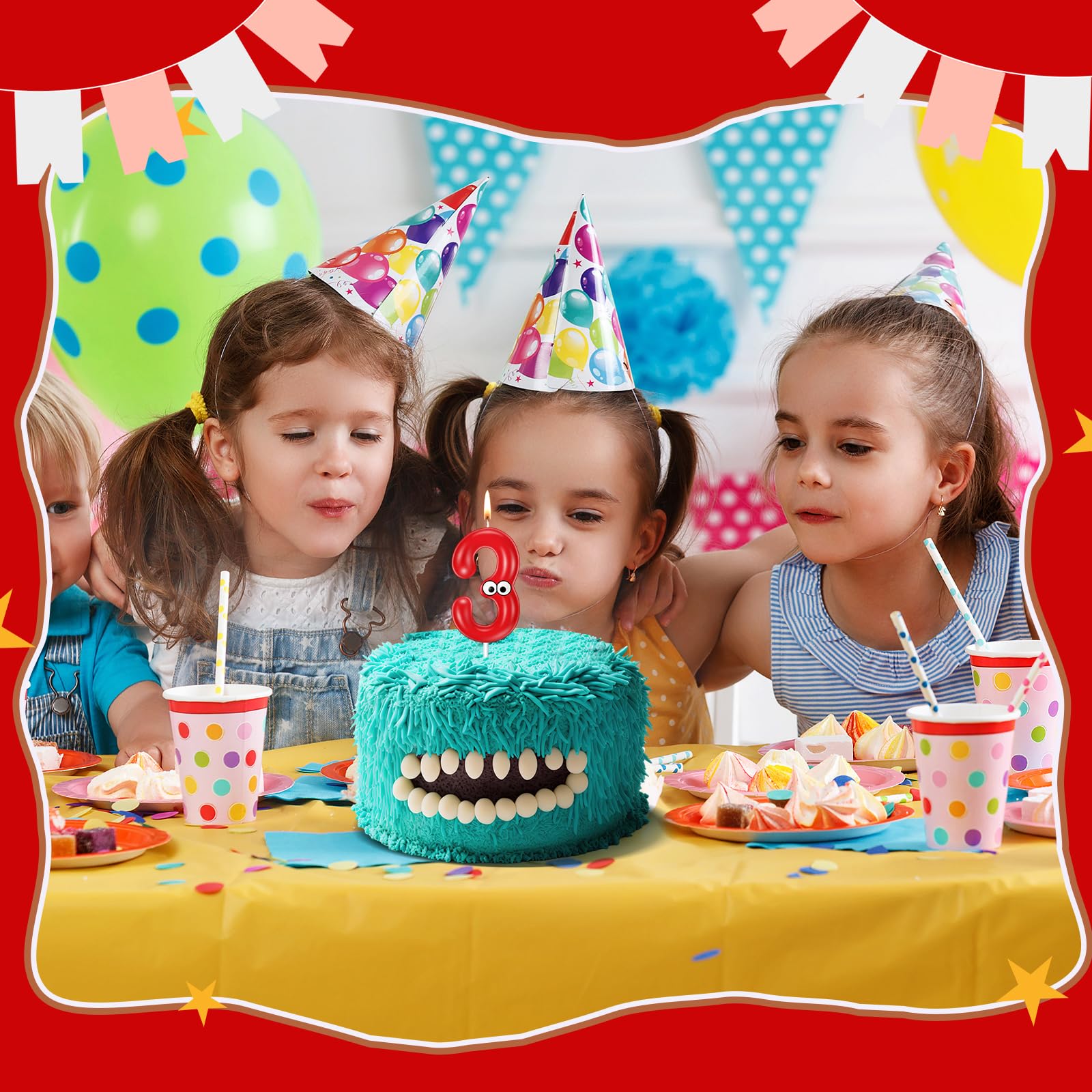 Features: A Good Addition to Various Events: Our digital birthday candle is not limited to birthday parties, it is also ideal for other events, and its cute design can enhance the atmosphere of the occasion. Wide Application: Our cake candles are designed with red color and monster eyes, suitable for monster theme parties, birthday parties, and baby showers, and are ideal decorations to enhance food presentation and event atmosphere. Specifications: Material: paraffin wax Color: red Size: about 2.36 inches/ 6 cm in height Package includes: 1 x Candle Notes: Manual measurement, please allow slight errors on size. The color may exist a slight difference due to different screen displays. Burning may produce a pungent smell. Open flame may pose a risk of burns, please keep away from children.