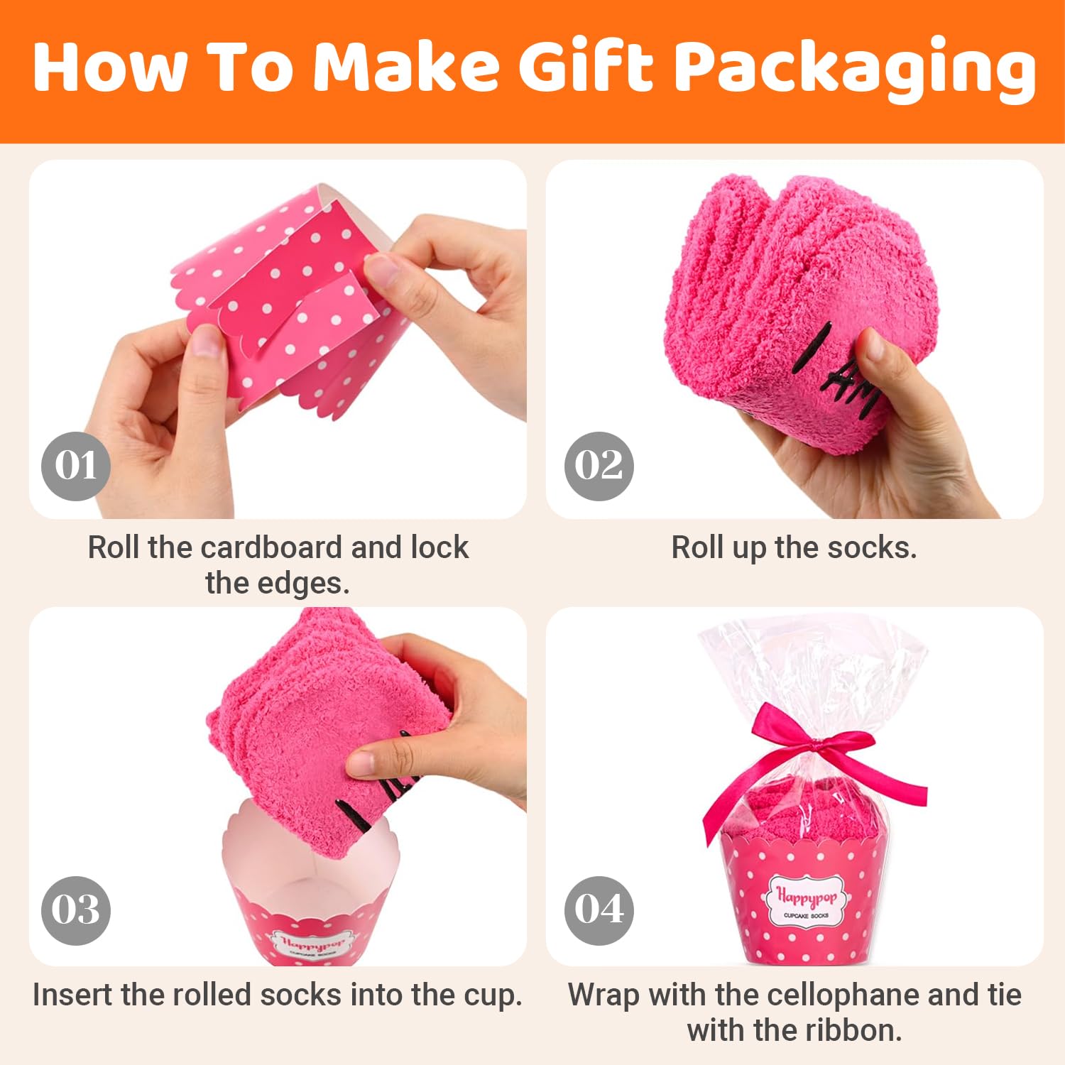 CUPCAKE PACKAGING: Socks arrive unassembled for easy shipping. Each pair includes a gift box and paper belt, allowing you to quickly assemble a cute cupcake-style gift in just one minute.