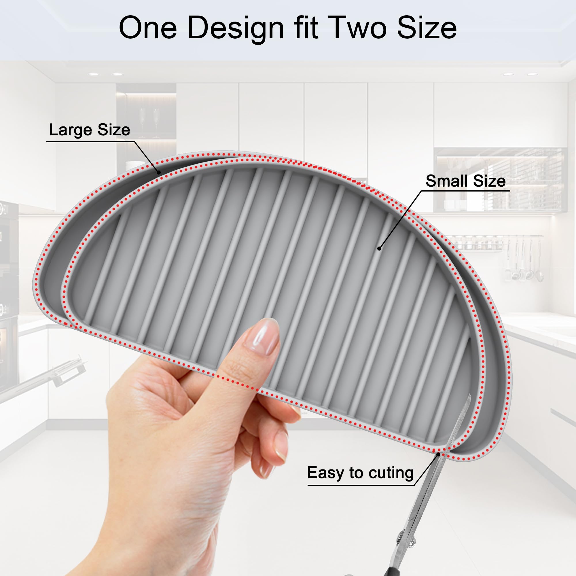 New Version Design : Two size is designed on the one drip tray,easy adjustment the size by yourself also the drip catcher tray is durable and so easy to cutting diffierent size to fit diffierent refrigertor like Ge,Whirlpool,Samsung..