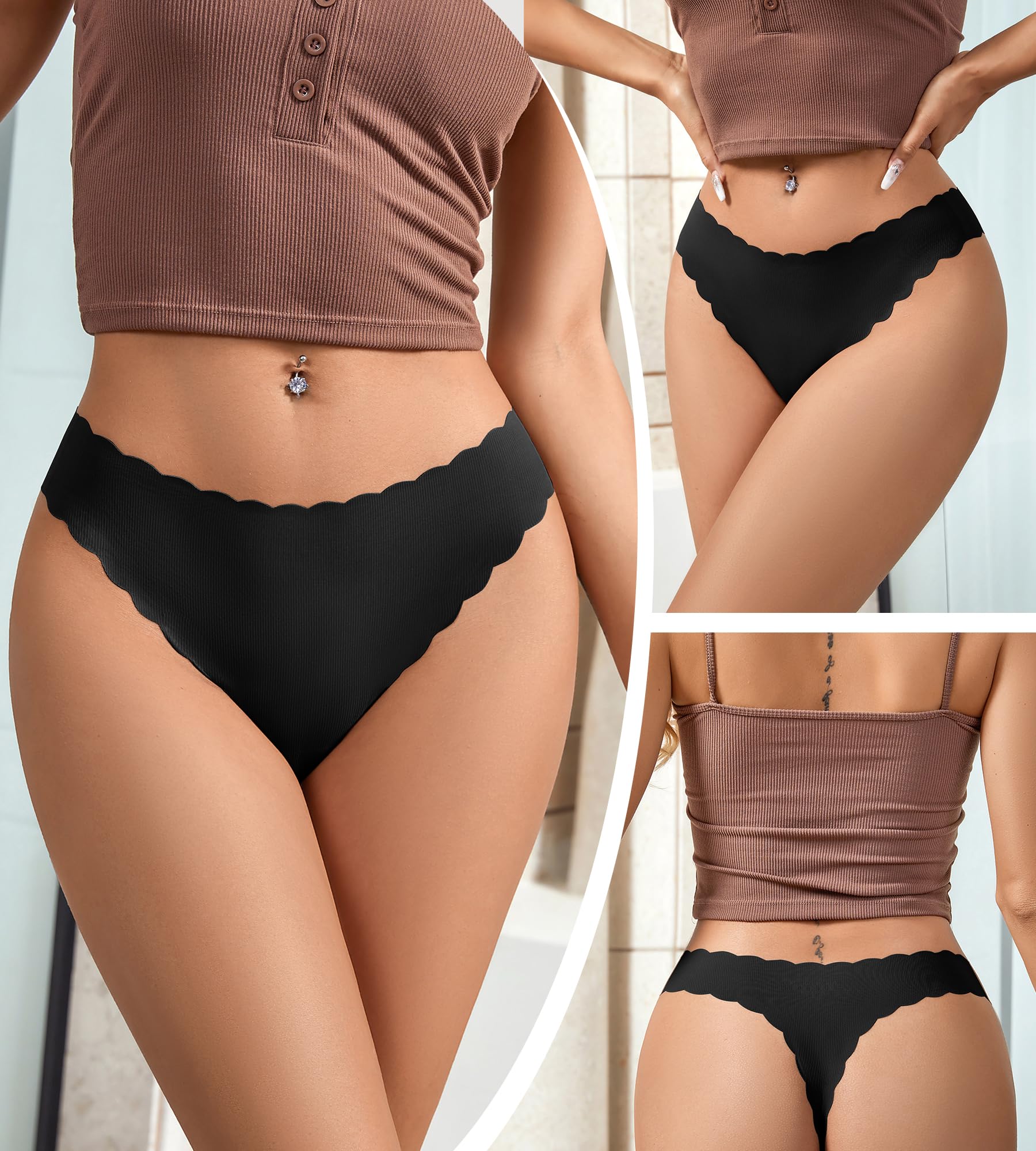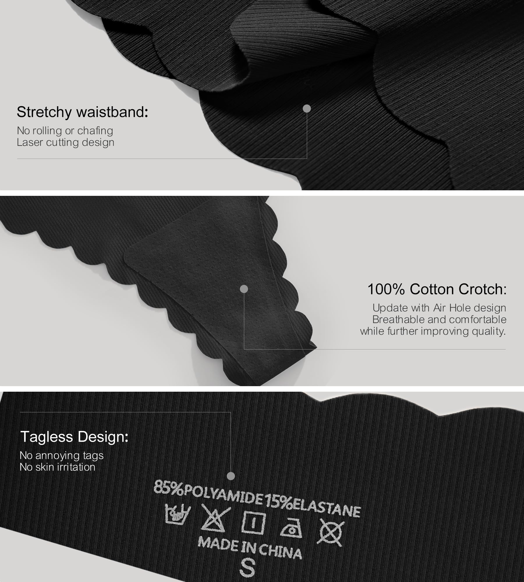 ❤【Wave Edge Seamless Underwear】The delicate laser cutting on fabric makes the underwear is invisible and no show without any panties lines under clothes. No show thong underwear with wave edge will reduce the coverage and show the hip curves, lovely and sexy.