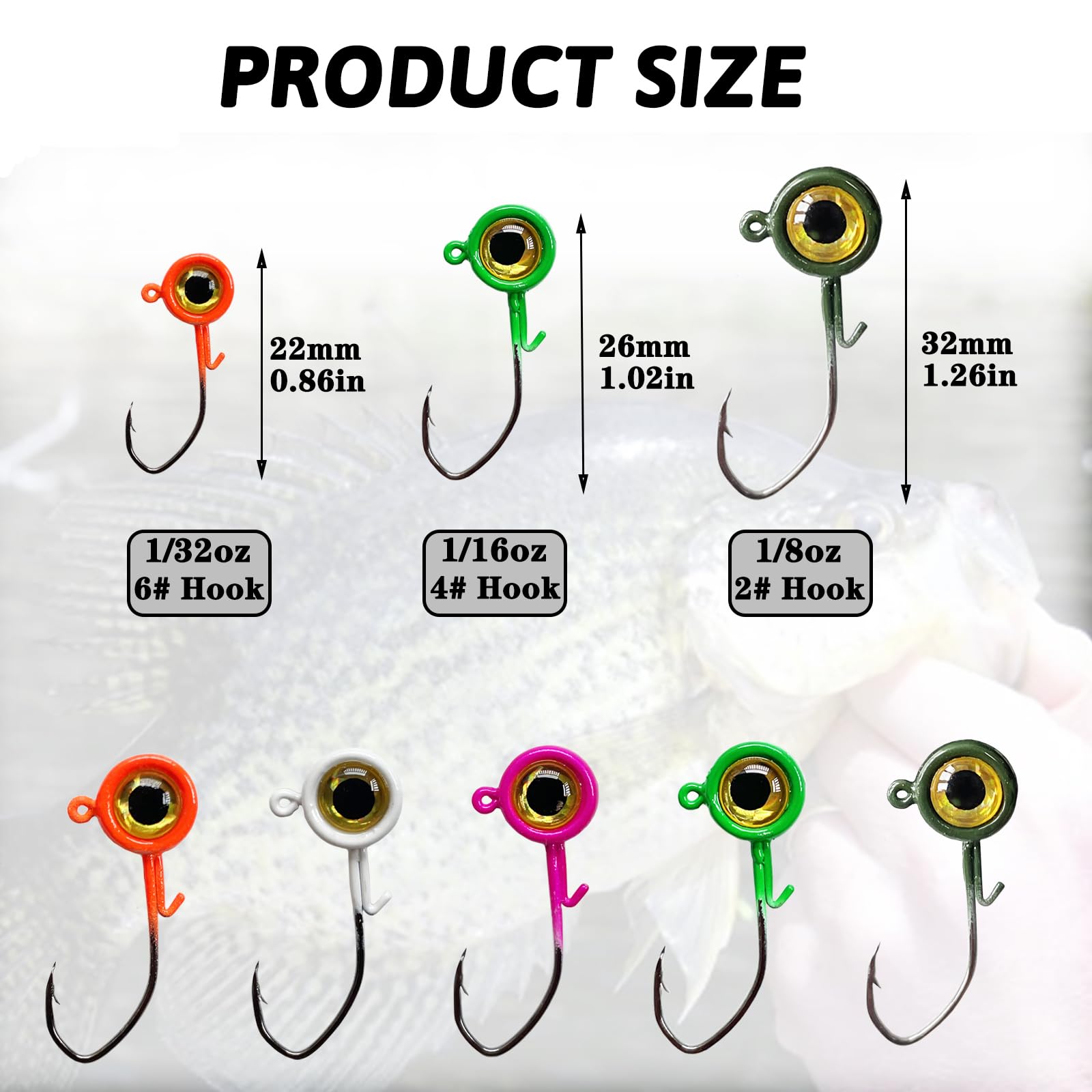 【Attractive Colors】Crappie jig heads offer bright, eye-catching colors,enhance its visibility underwater,will attract fish's attention from a distance. Great gifts for father birthday and Christmas.