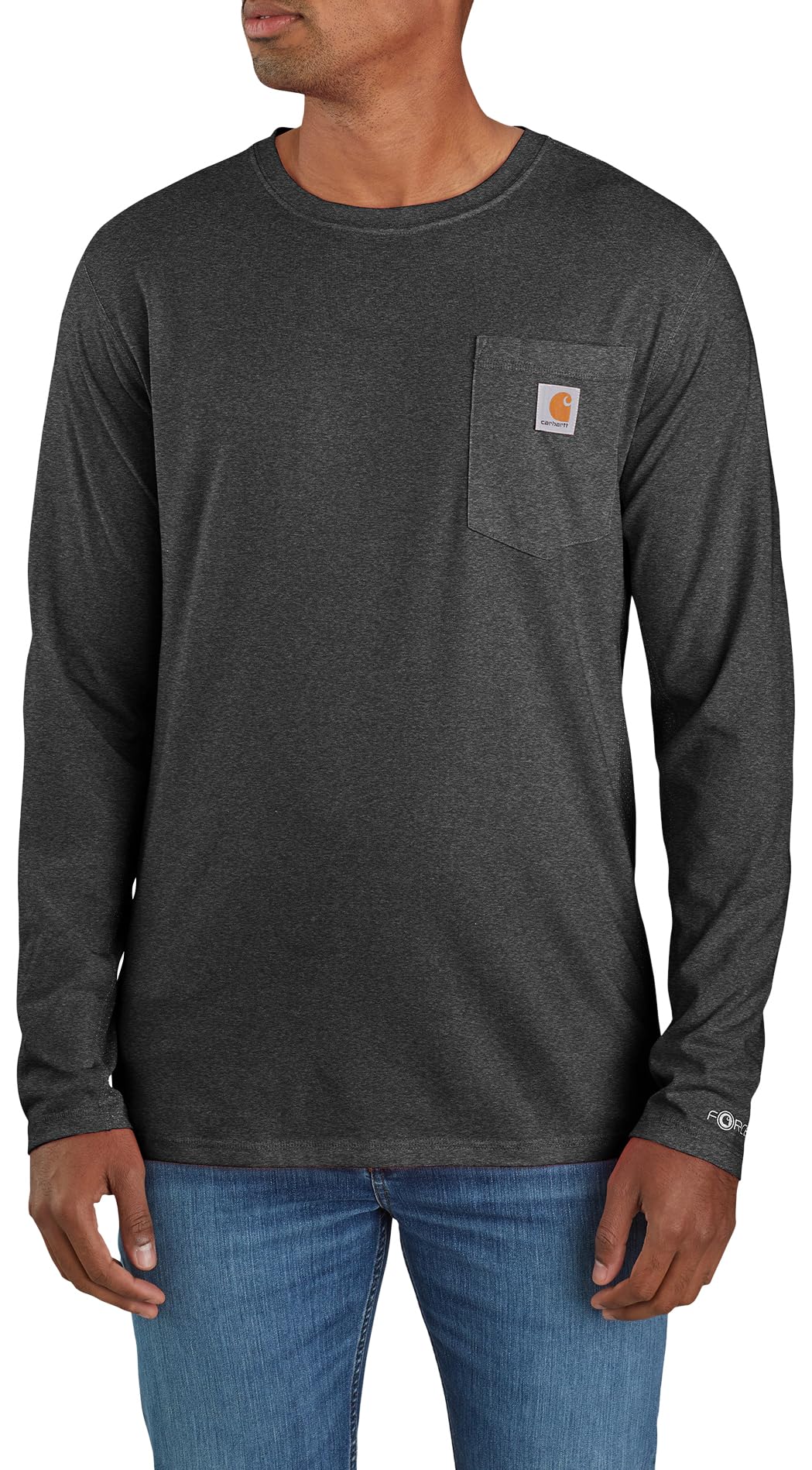 Description Made to withstand warm, sunny days. This men's Carhartt long-sleeve t-shirt helps you keep your cool through long hours under the sun. UPF-rated, cotton-blend fabric fights sweat and dries fast for all-day comfort. Ventilated panels keep air circulating.