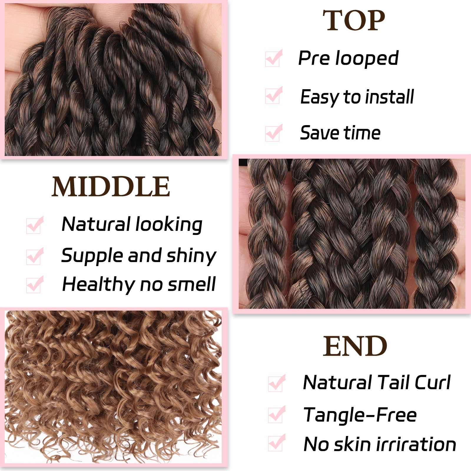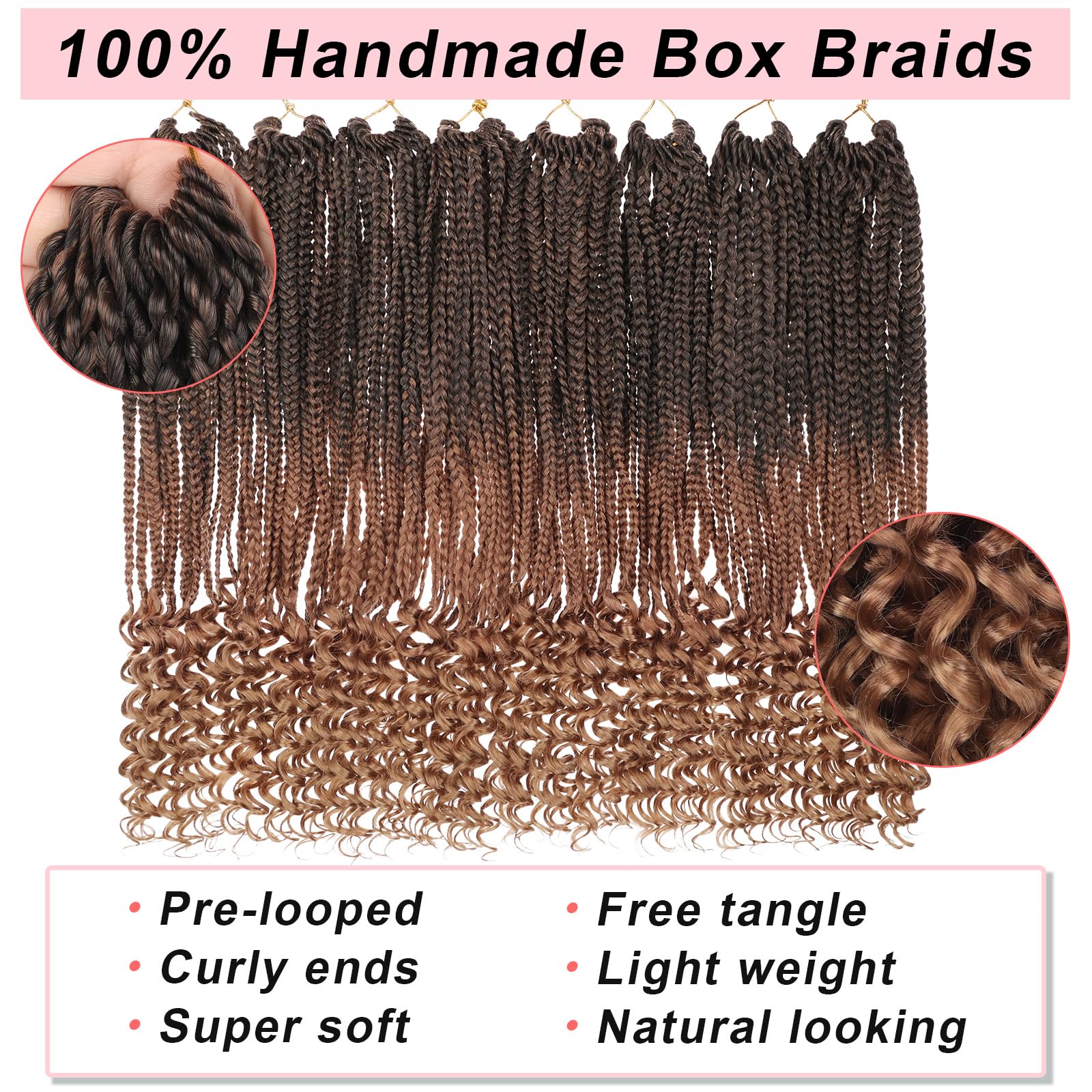 Hair Features: Goddess box braids crochet hair is 100% handmade, with pre-looped design, easy to install, especially for beginners, it can save more time to make hairstyles.