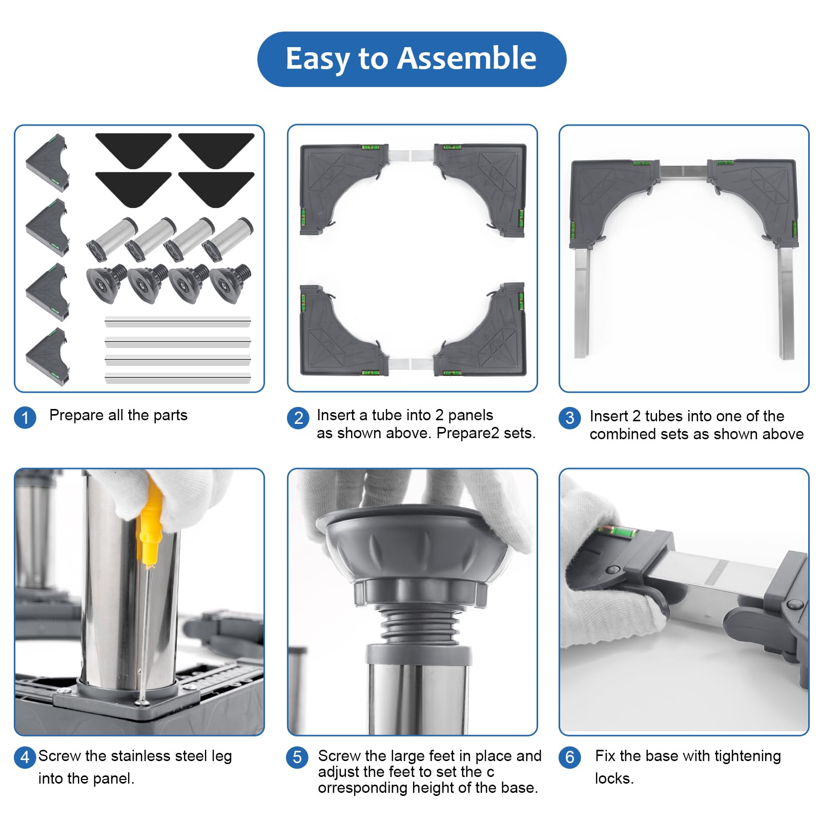 EASY TO ASSEMBLE - The mobile base set includes 4 strong feet(no wheels), what you need to do just to install the connecting rod and the feet. The stand can be easily assembled with instruction. No tool requirement.