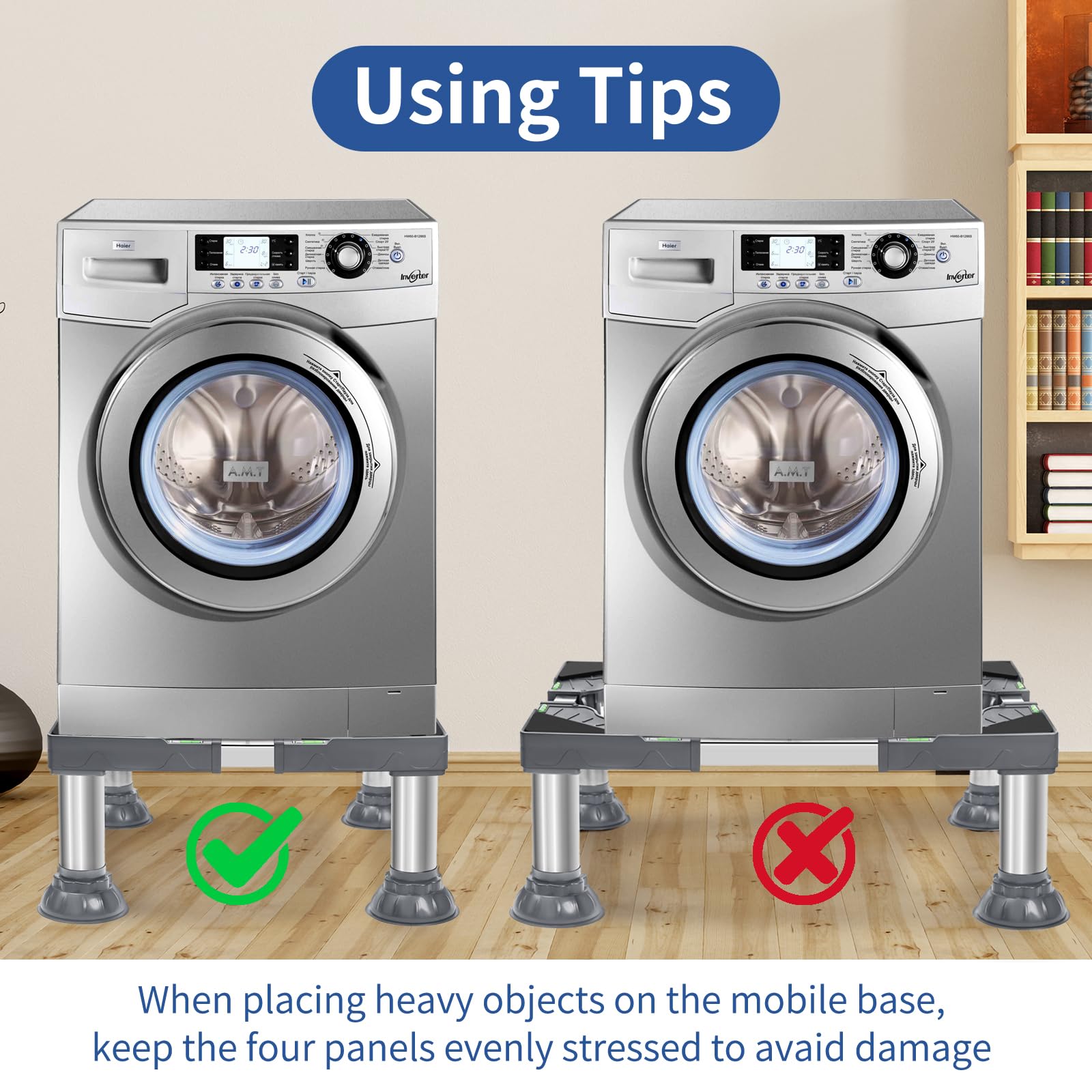 GREAT FAMILY HELPER - Worry about dripping water or potential danger when put the fridge on carpets, annoy by the distance of dryer to destination? Nefish mobile furniture stand base can help you solve these problem, make home life easier.
