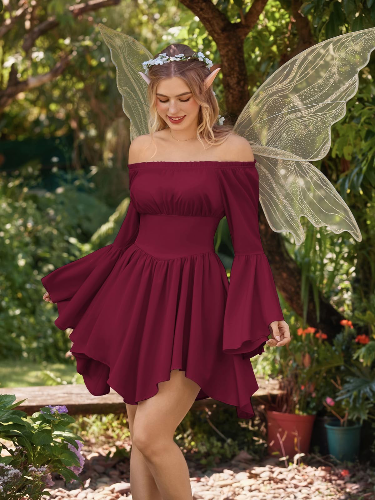 MATCH TIPS - Pair our fairy dress with a corset and lace-up boots to complete the Renaissance look. To enhance the Halloween vibe, add a witch's hat, dark makeup, and a broomstick. Let your imagination run wild and create your unique combinations!