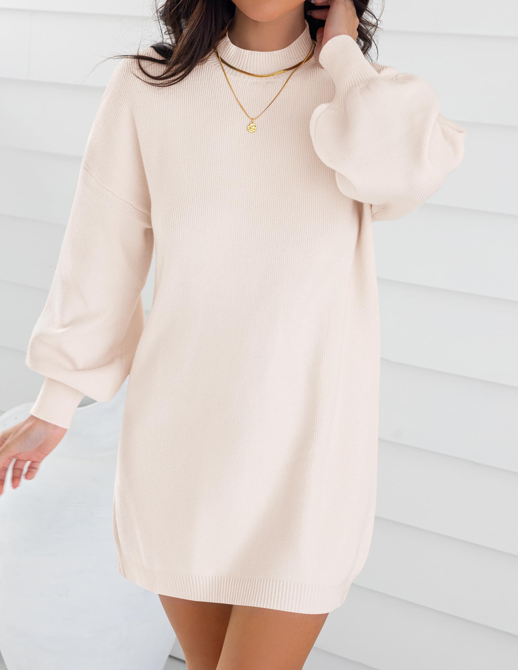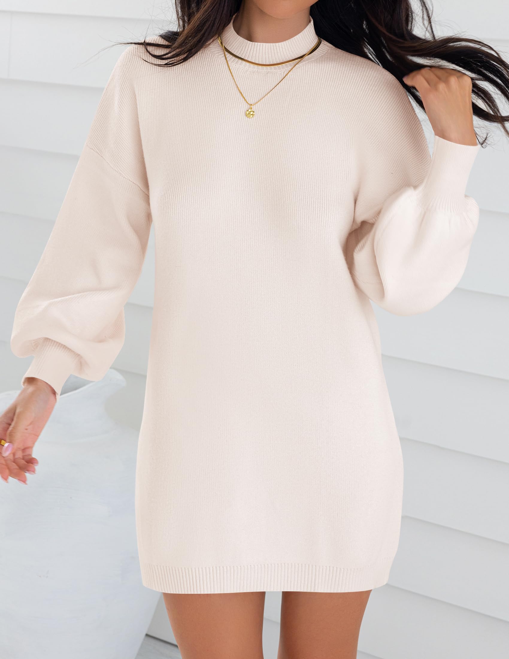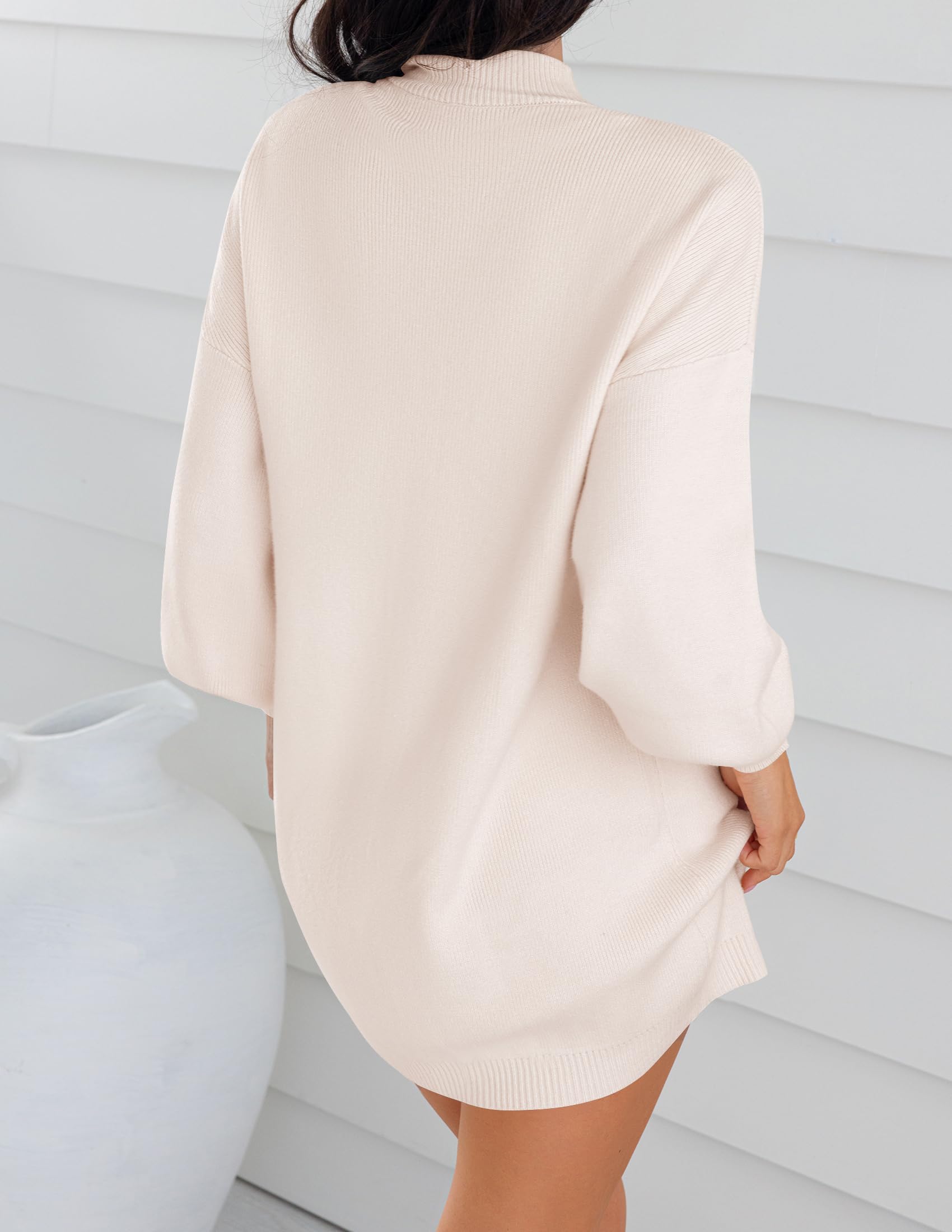 Sweater dresses for women 2025, mini dresses for women, fall sweater dress, lantern long sleeve dress, ribbed knit dress, mock neck, loose fit, classic solid color, above knee length, slouchy and baggy style, maternity dress, winter dress, cocktail party dress