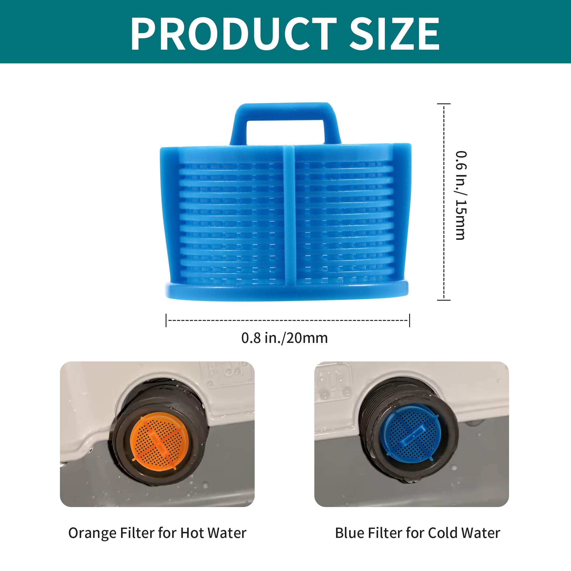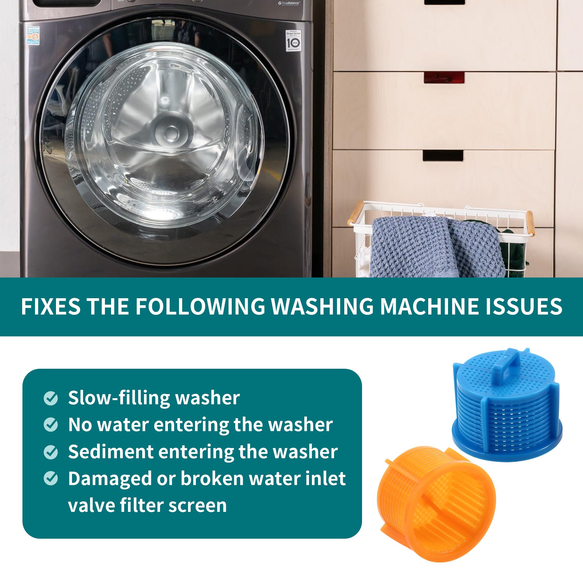 DURABLE MATERIAL: Made from high-quality ABS plastic, these washing machine filters are strong, reusable, and less likely to break or deform. They are color-coded for easy installation - orange for hot water and blue for cold water.