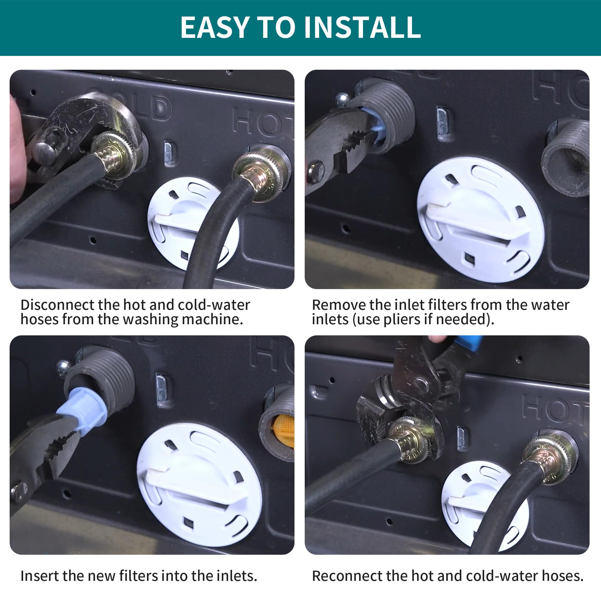 IMPROVES WASHER PERFORMANCE: Replacing a clogged or damaged water hose inline filter for washer machine helps solve issues like slow or no water flow, filter blockages, and impurities in the water, thereby extending the lifespan of your washing machine.