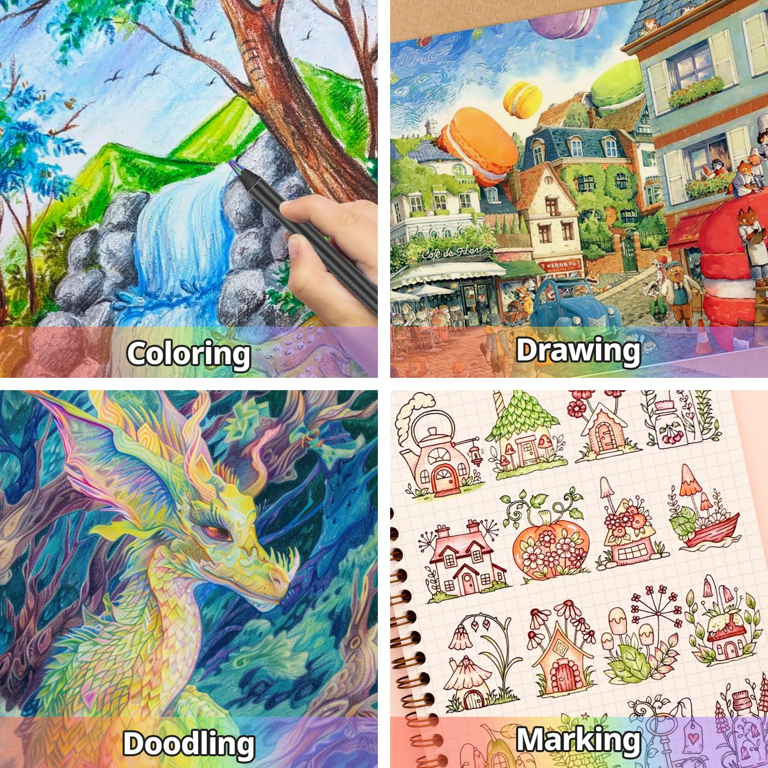 🎨[ Unique Color Effect ] - The pencil cores have more than three different colors mixed, and the random colors seem to keep your drawing with a sense of surprise at all times, you can easily switch between the shades to create beautiful gradients and shading effects, enhancing your Drawing colorful.