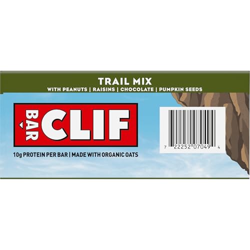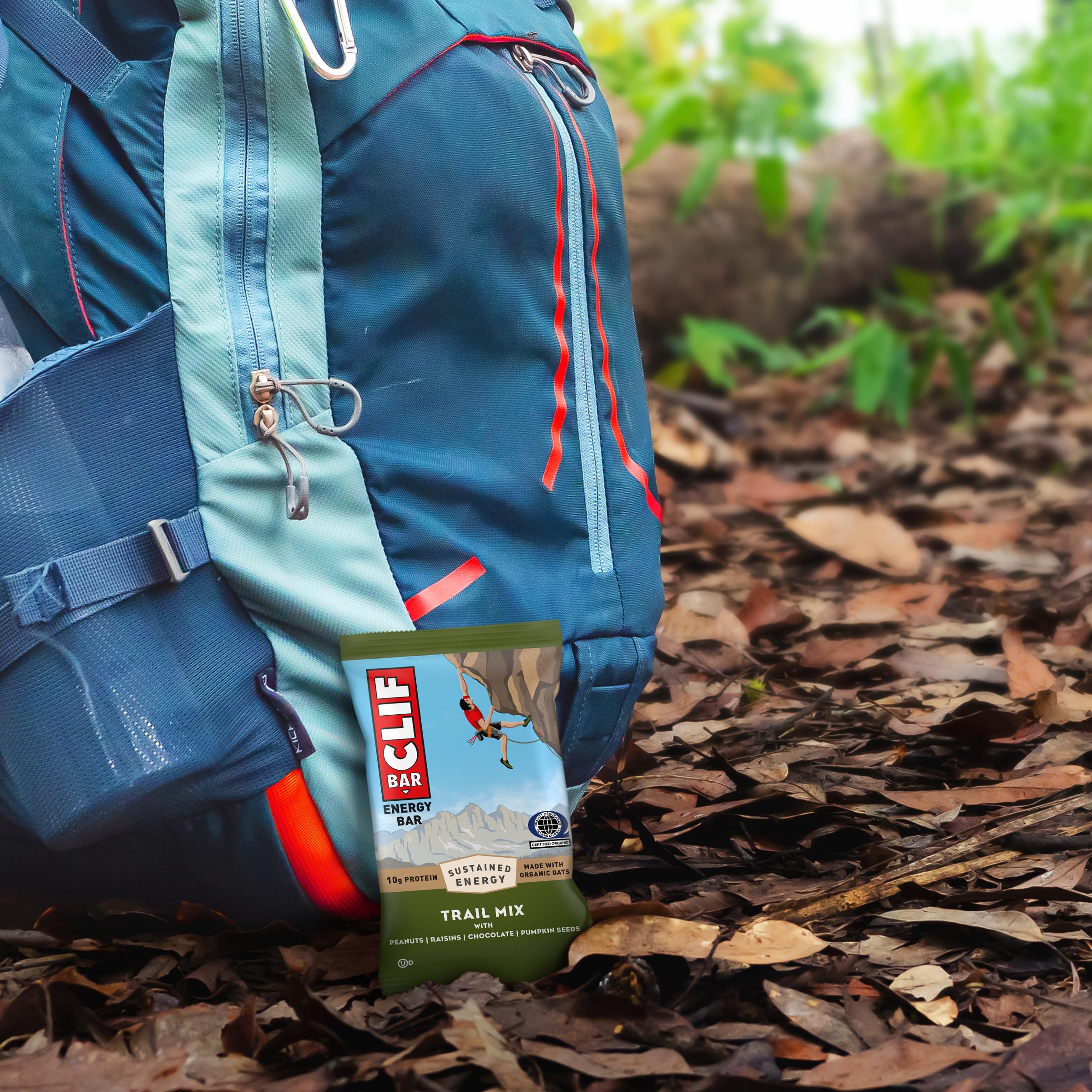 Born on a 175-mile bike ride, CLIF BAR energy bars are purposefully crafted with a mix of protein, fat, and carbohydrates to help sustain active bodies before and during long-lasting activity. CLIF BAR Trail Mix Energy Bar contains 10 grams of protein per bar and features classic Trail Mix ingredients, like sustainably sourced peanuts, raisins, chocolate, and pumpkin seeds. These tasty protein bars hit the spot while you hit the trails, making them great hiking snacks for tossing into backpacks. This workout snack for biking, running, climbing, and more is made with non-GMO ingredients and wholesome organic rolled oats, for a granola bar you can feel good about. These plant based bars contain no high-fructose corn syrup or artificial flavors. As part of the CLIF brand mission, their two LEED-certified bakeries and Emeryville, CA, headquarters run with the help of on-site solar arrays and/or offset electricity purchased through renewable energy credits (RECs). From CLIF BAR Energy Bars to Builders Protein Bars and Zbar Snack Bars, CLIF turns grabbing a bar into raising your bar.