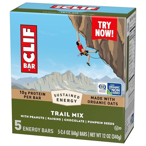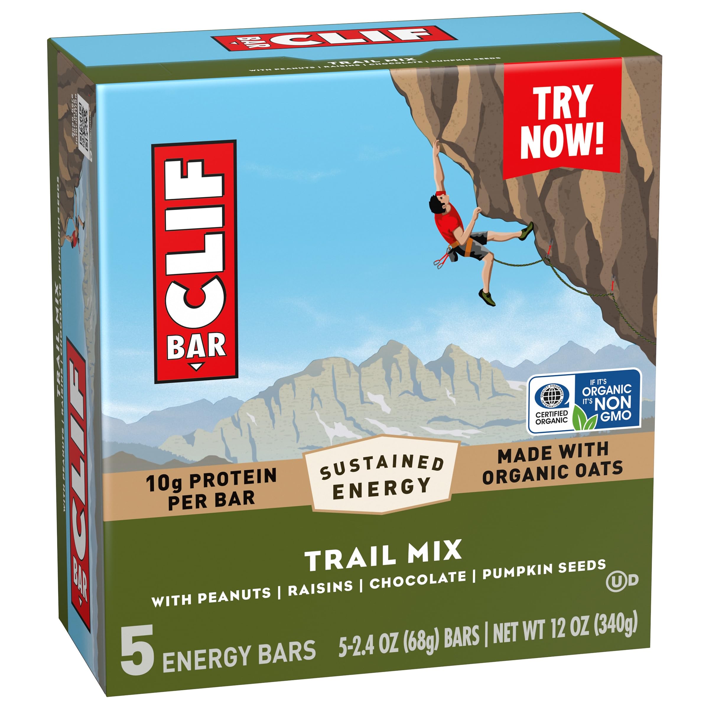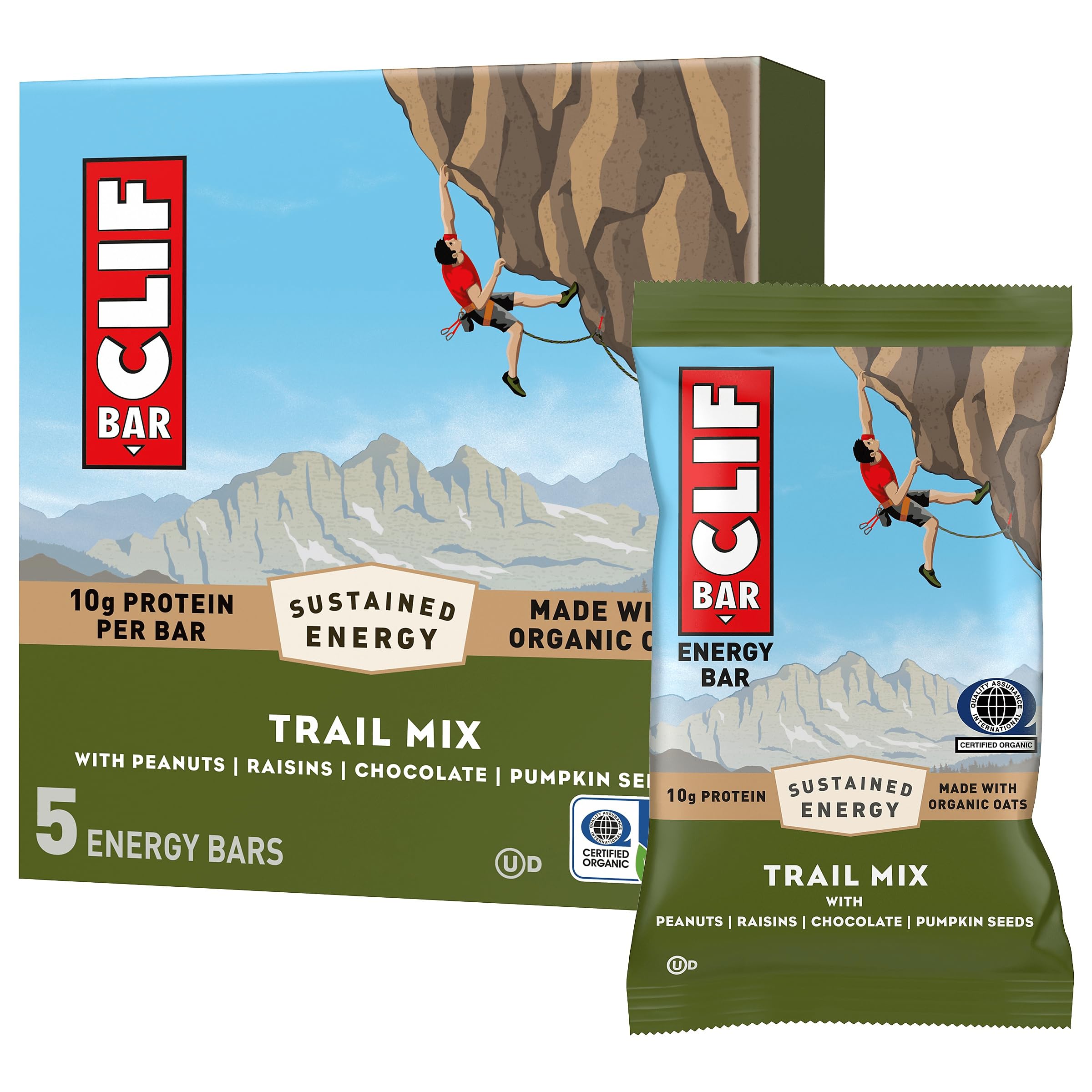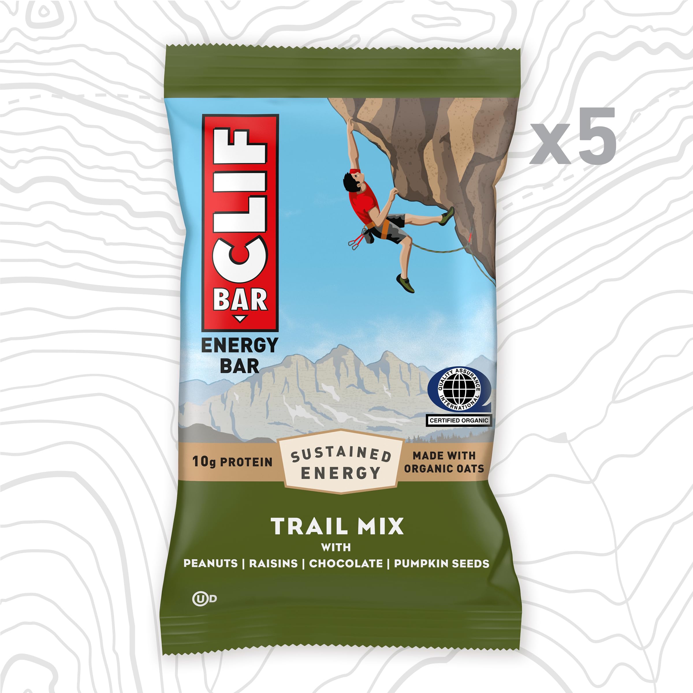 CLASSIC TRAIL MIX FAVORITE: One 5-pack box of CLIF BAR Trail Mix Energy Bars made with plant based ingredients like organic oats and sustainably sourced peanuts, raisins, chocolate, and pumpkin seeds (packaging may vary)