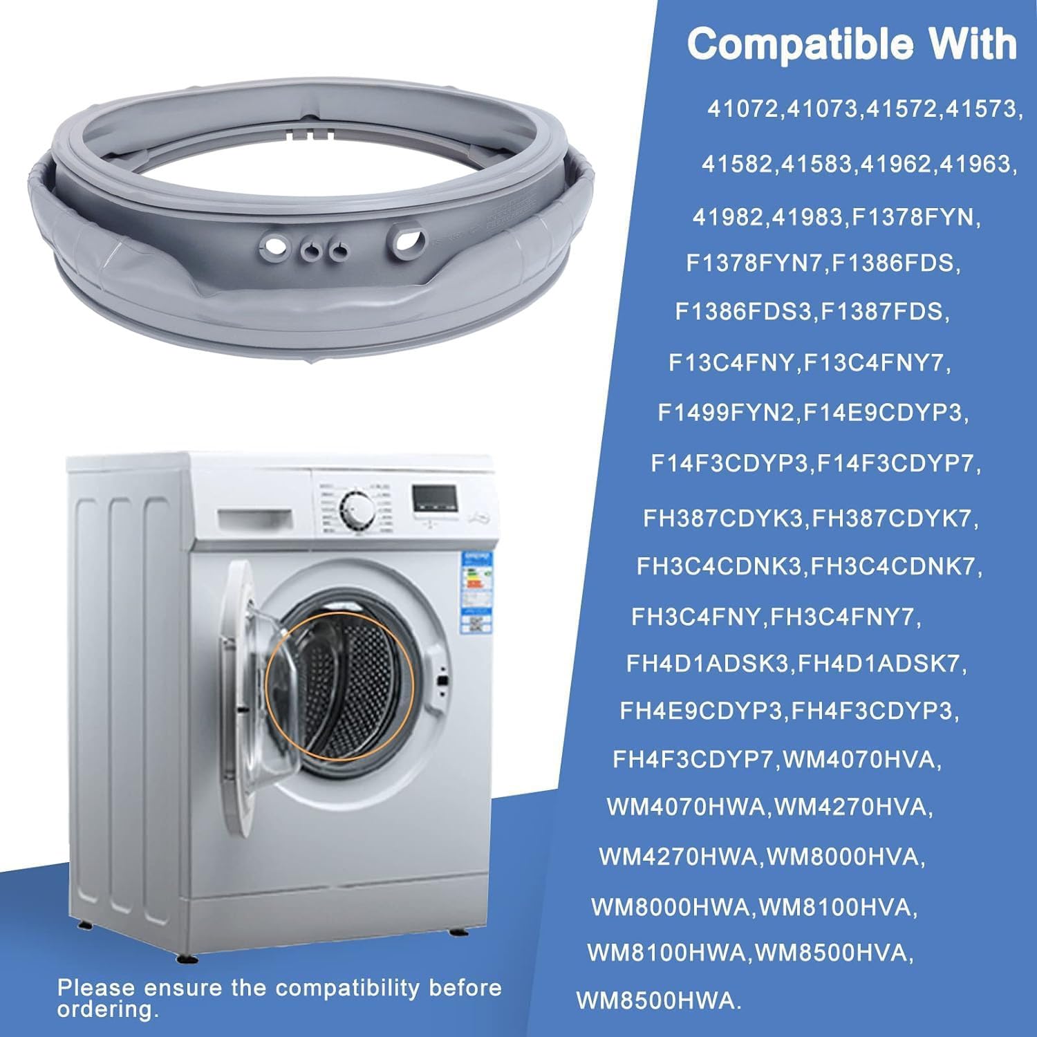 โ๏ธใ๐๐ผ๐บ๐ฝ๐ฎ๐๐ถ๐ฏ๐น๐ฒใMDS47123608 Door Gasket compatible with LG washing machine model 41072, 41073, 41572, 41573, 41582, 41583, 41962, 41963, 41982, 41983, F1378FYN, F1378FYN7, F1386FDS, F1386FDS3, F1387FDS, F1387FDS3, F13C4FNY,F13C4FNY7,F1499FYN,F1499FYN2,F14E9CDYP3,F14F3CDYP3,F14F3CDYP7,FH387CDYK3,FH387CDYK7,FH3C4CDNK3,FH3C4CDNK7,FH3C4FNY,FH3C4FNY7,FH4D1ADSK3,FH4D1ADSK7,FH4E9CDYP3,FH4F3CDYP3,FH4F3CDYP7,WM4070HVA,WM4070HWA,WM4270HVA,WM4270HWA,WM8000HVA,WM8000HWA,WM8100HVA,WM8100HWA,WM8500HVA