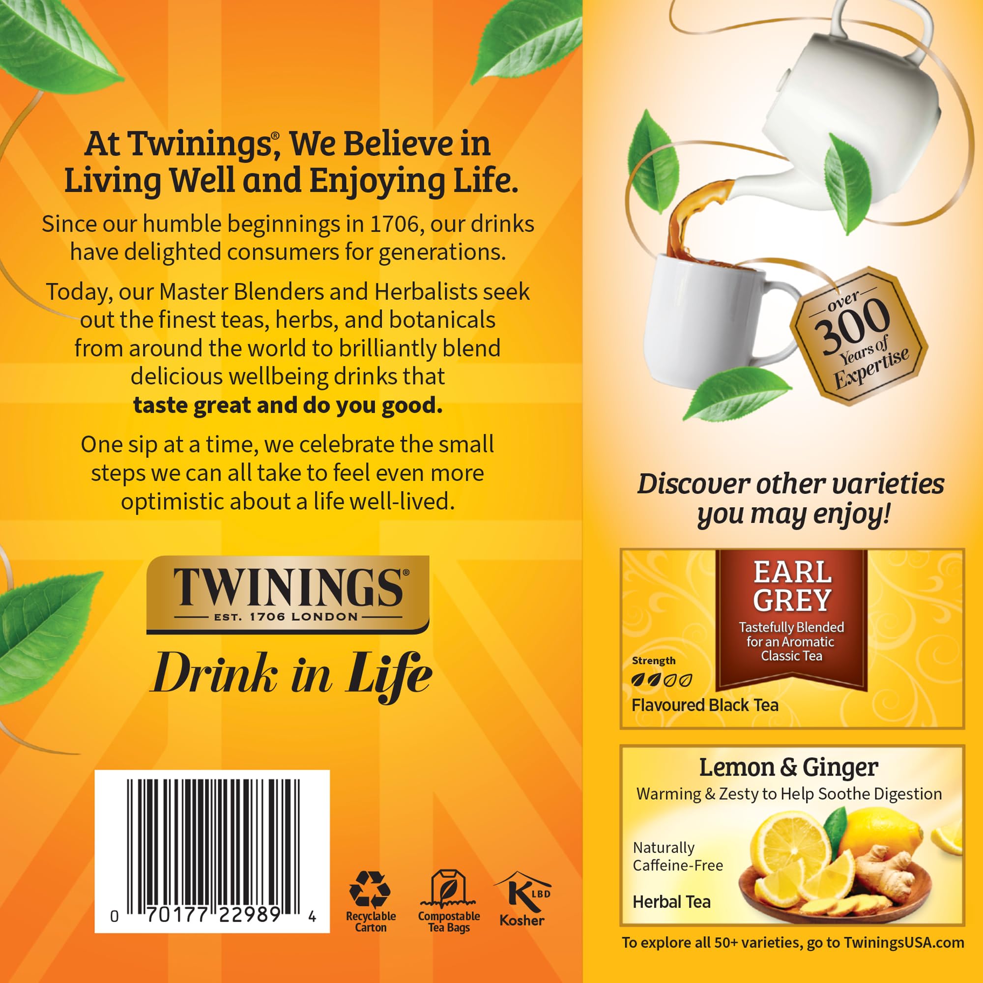 INDIVIDUALLY SEALED TEA BAGS STAY FRESH: Take your tea on the go in your purse, workout bag, backpack, school or work desk or car; Each tea bag is sealed for freshness so every cup of Twinings is the perfect cup of Twinings
