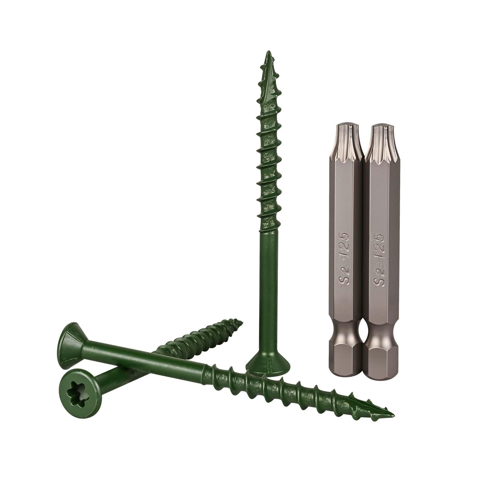 COMPLETE SET: Package includes 350 pieces of ##10 x 2-1/2-inch deck screws and T25 star drive bits for immediate installation