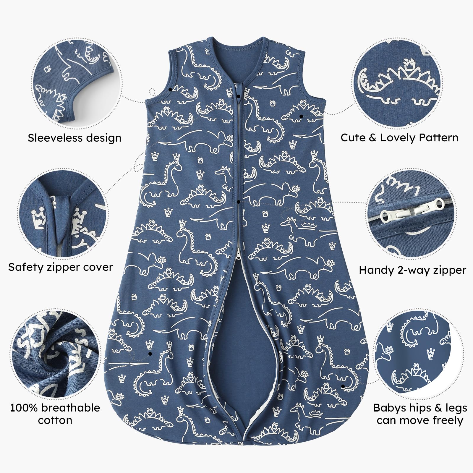Soft and Cozy - This baby sleep sack made with 100% Organic cotton, super-soft and breathable for comfort. Sleeveless design helps regulate baby's temperature, reducing overheating risk and ensuring warmth and cozy.