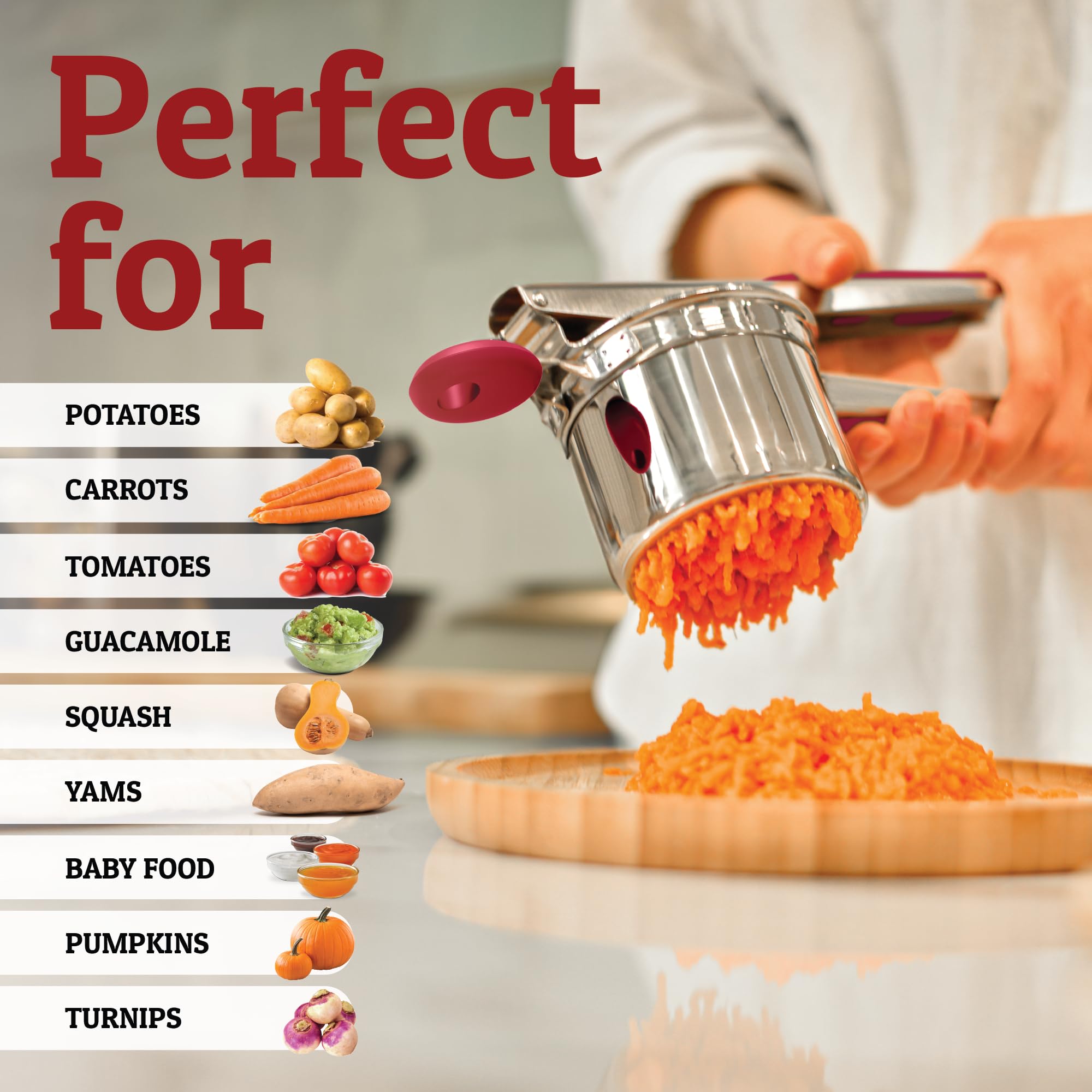 Endless Possibilities - Our ricer is not only for mashed potatoes; it will quickly become one of your kitchen essentials, allowing you to rice and puree many other veggies, including making baby food. PriorityChef kitchen accessories are some of the best finds for any home and backed by our customer satisfaction promise