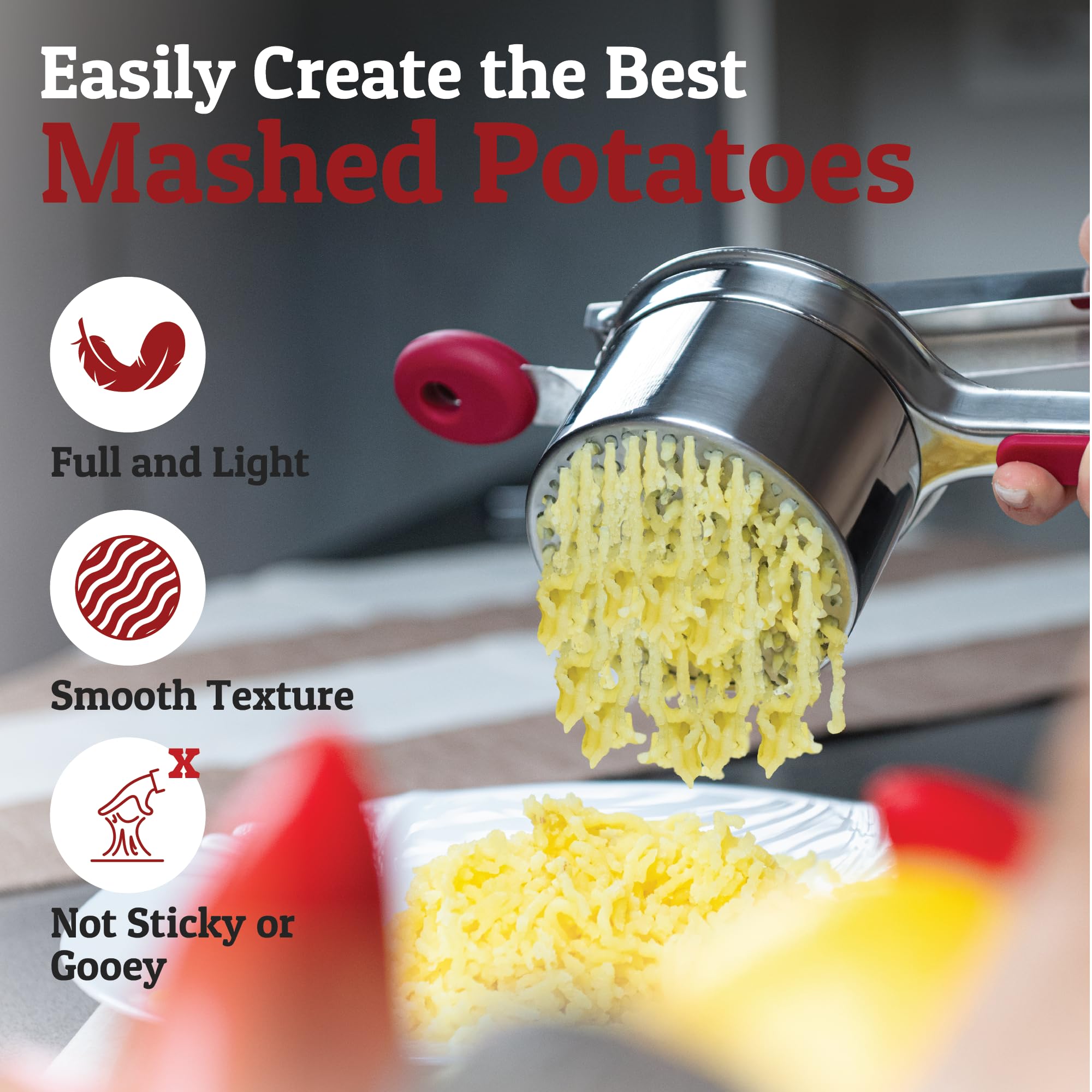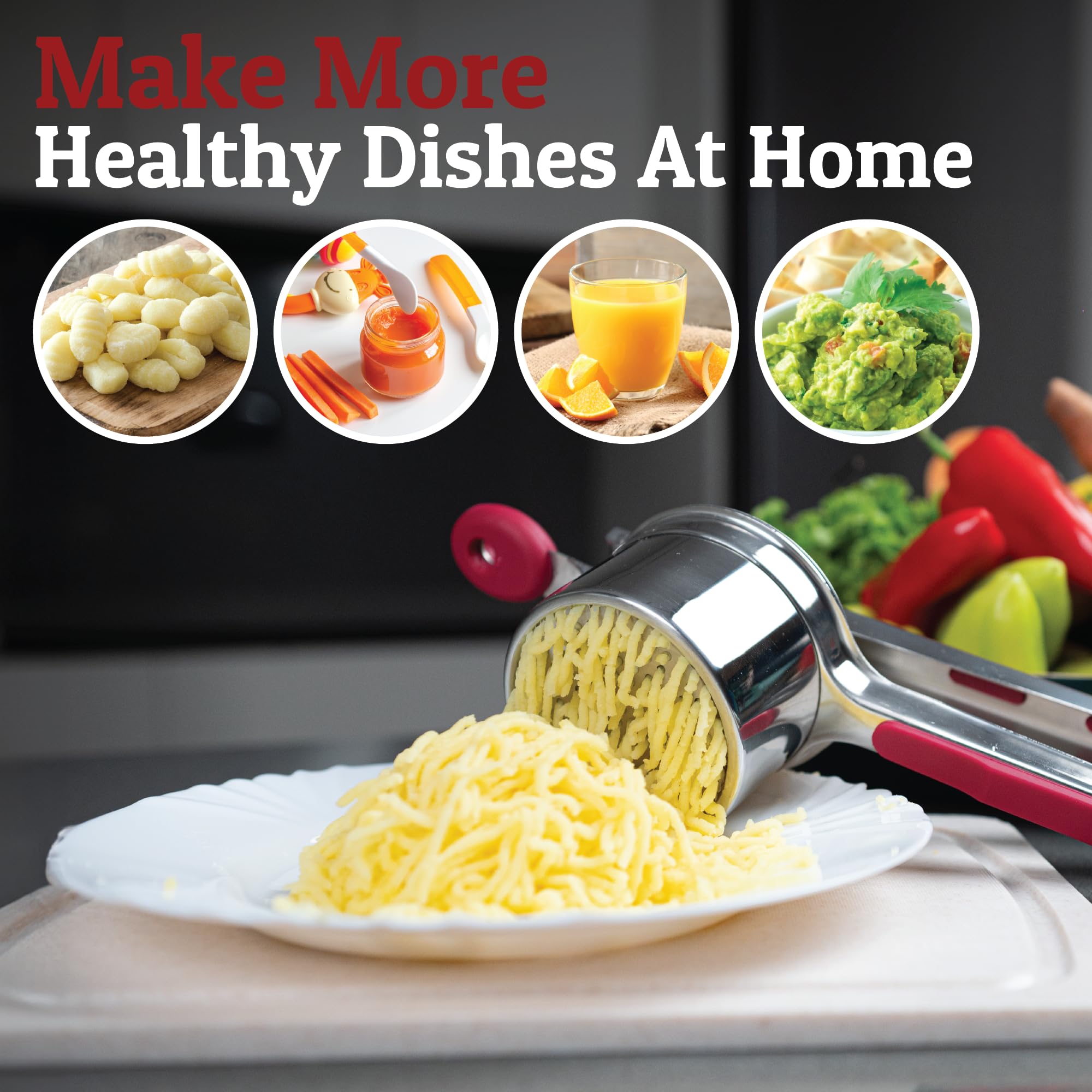 Mashing Potatoes Made Easy - Don’t you wish you can create perfectly smooth and fluffy mash potato with less effort? With our PriorityChef ricer masher kitchen tool, you can achieve a creamy, heavenly dish quickly and conveniently. Simply squeeze on the long handle of our potato press for perfect mash