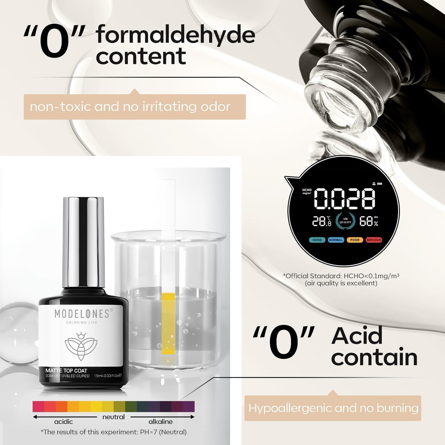 Upgraded Formula: Modelones Matte Top Coat Gel Polish is made of upgraded formula, which can better cope with the problems that other top coats met, avoid nicks, chips and smudges, bringing you a perfect matte effect.