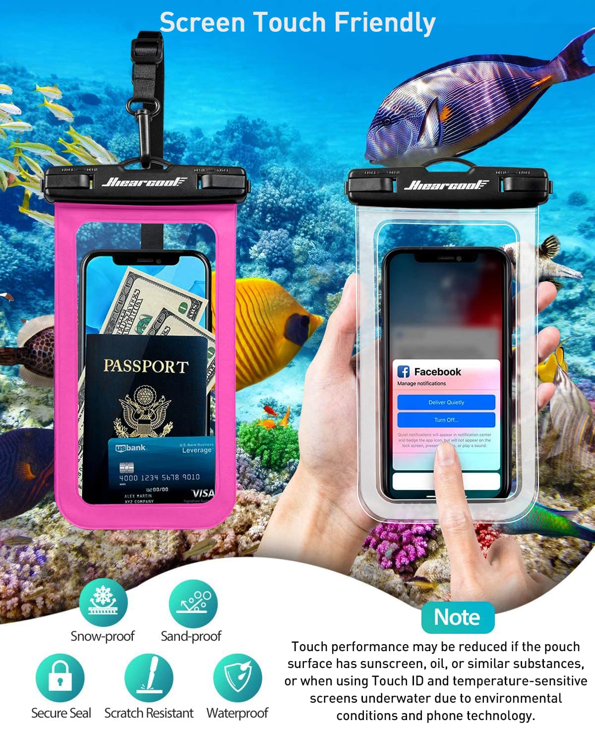 IPX8 Waterproof Protection: Certified for depths, the Hiearcool phone pouch's triple-seal barrier defends against water, sand, and dust. A must-have for beach vacation to ensure your phone stays dry