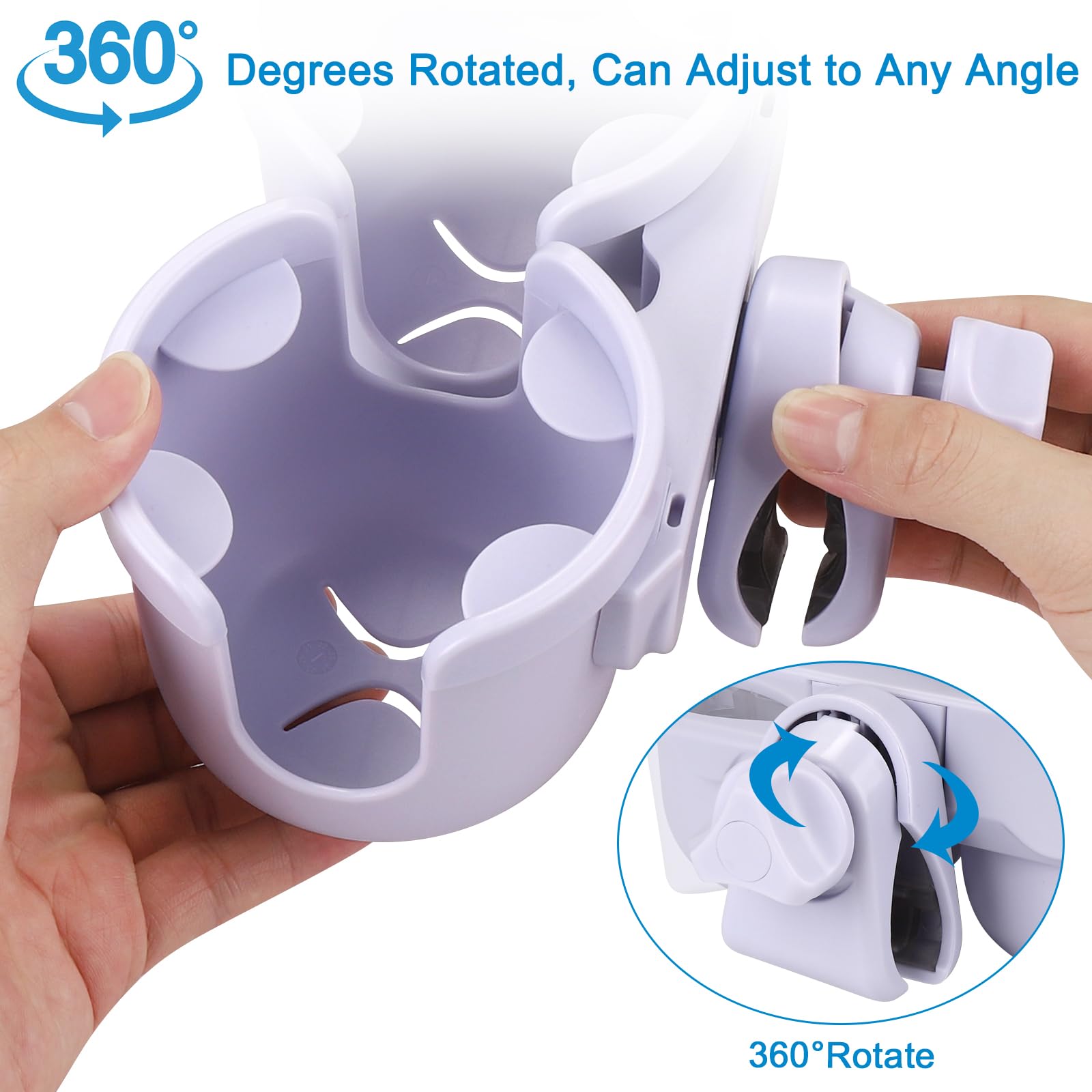 Easy to Use: This stroller cup holder attachment is made of durable materials. The ABS plastic and slip resistant rubber ensure the bottle keep steady even on the rough road. It is a "clip on" cup holder, you just need to clamp on anywhere you like. Easy to install or remove.