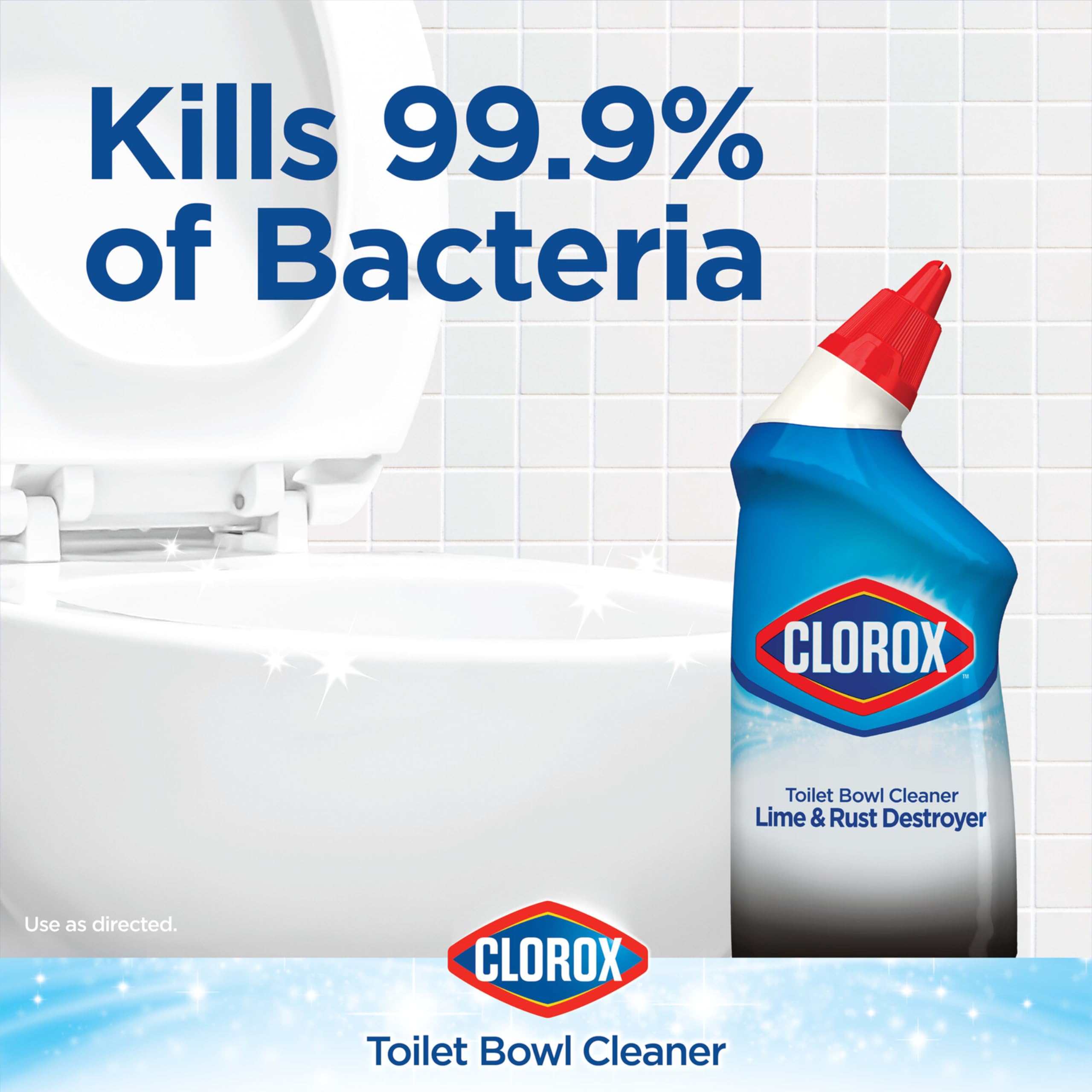 Easily tackle your toughest rust, calcium and lime stains with Clorox Toilet Bowl Cleaner Lime & Rust Destroyer. This non-abrasive toilet bowl cleaner removes dirt and grime, destroying 99.9% of bacteria with a powerful clinging non-bleach formula. The uniquely angled dispensing nozzle makes it easy to target hard to reach areas under the bowl rim. This Clorox Toilet Bowl Cleaner clings to the toilet bowl surface to dissolve hard water stains, and destroy mineral deposits, rust, and lime scale. Keep the dreaded toilet ring away with this powerful non-bleach cleaner, as it deodorizes and powers through the toughest toilet stains. Get your toilet squeaky clean with Clorox Toilet Bowl Cleaner Lime & Rust Destroyer.