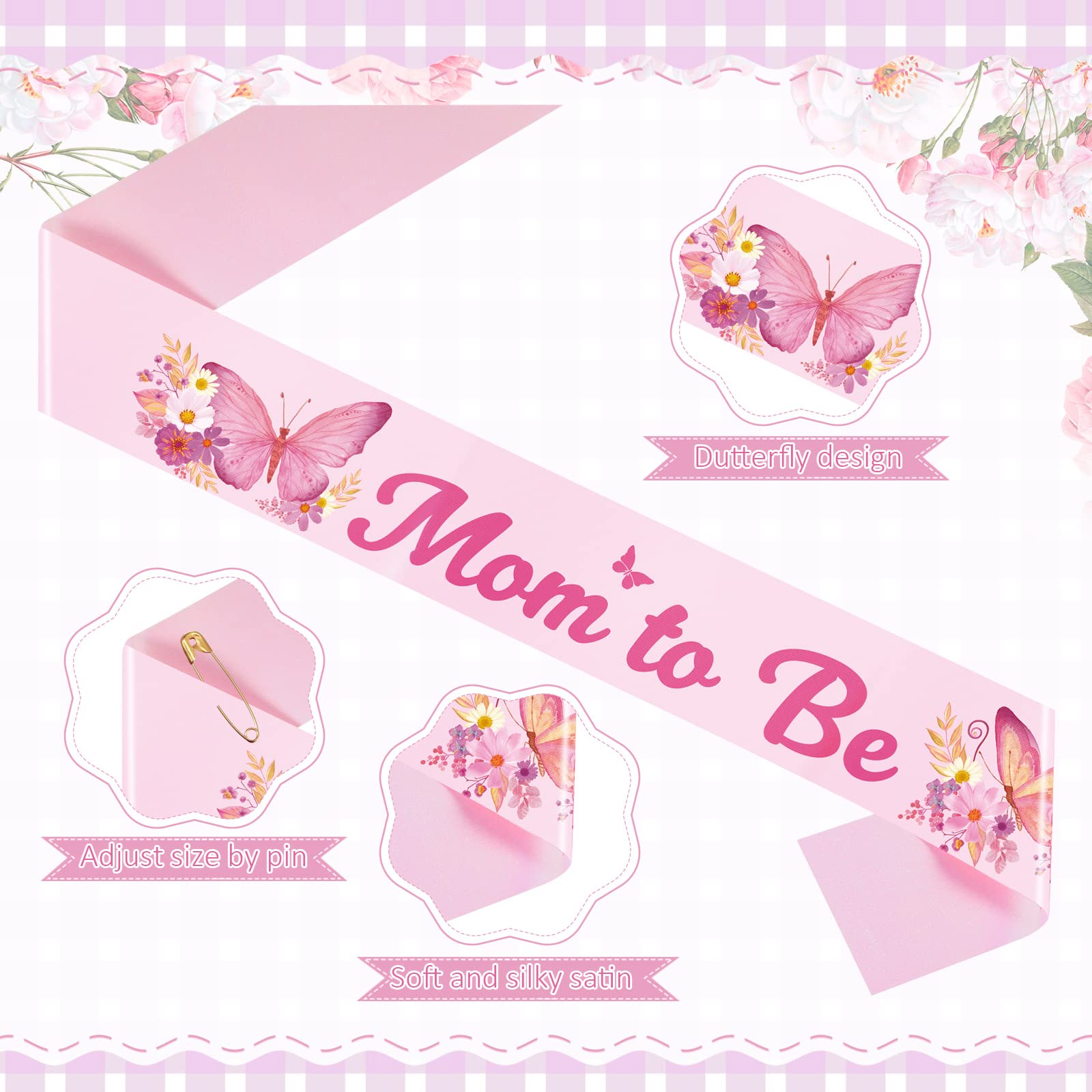 Wide Application: this pink butterfly theme mom to be sash baby shower will be a nice gift and souvenirs keepsake for the newborn parents; Whether it's for a gender reveal, baby shower party or party photo shoot, this beautiful sash will help create an unforgettable memory for new parents