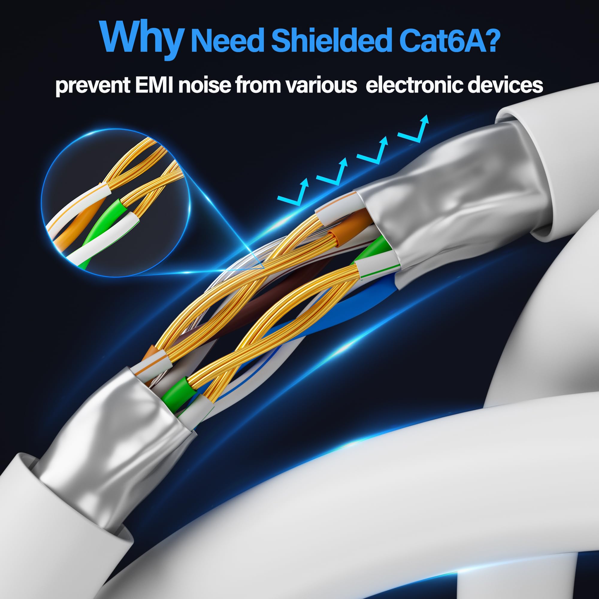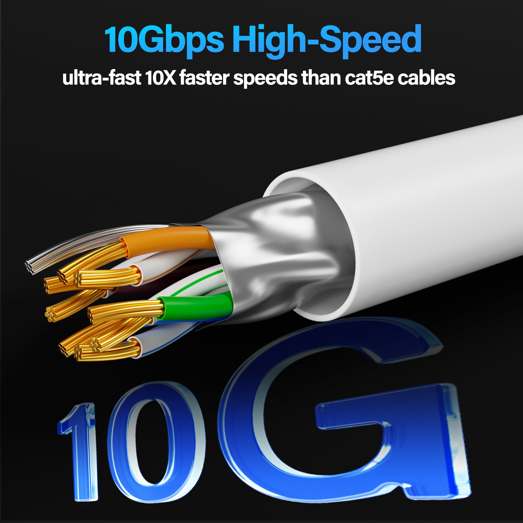 【10Gbps High-Speed】: Ethernet cable cat6a provide ultra-fast 10 Gbps speed with 550MHZ bandwidth. Cat 6e ethernet cable is perfect for 4K streaming, online gaming, and large downloads, and 10X faster speeds than cat5e cables, backward compatible with cat6, cat5e and cat5 standards.