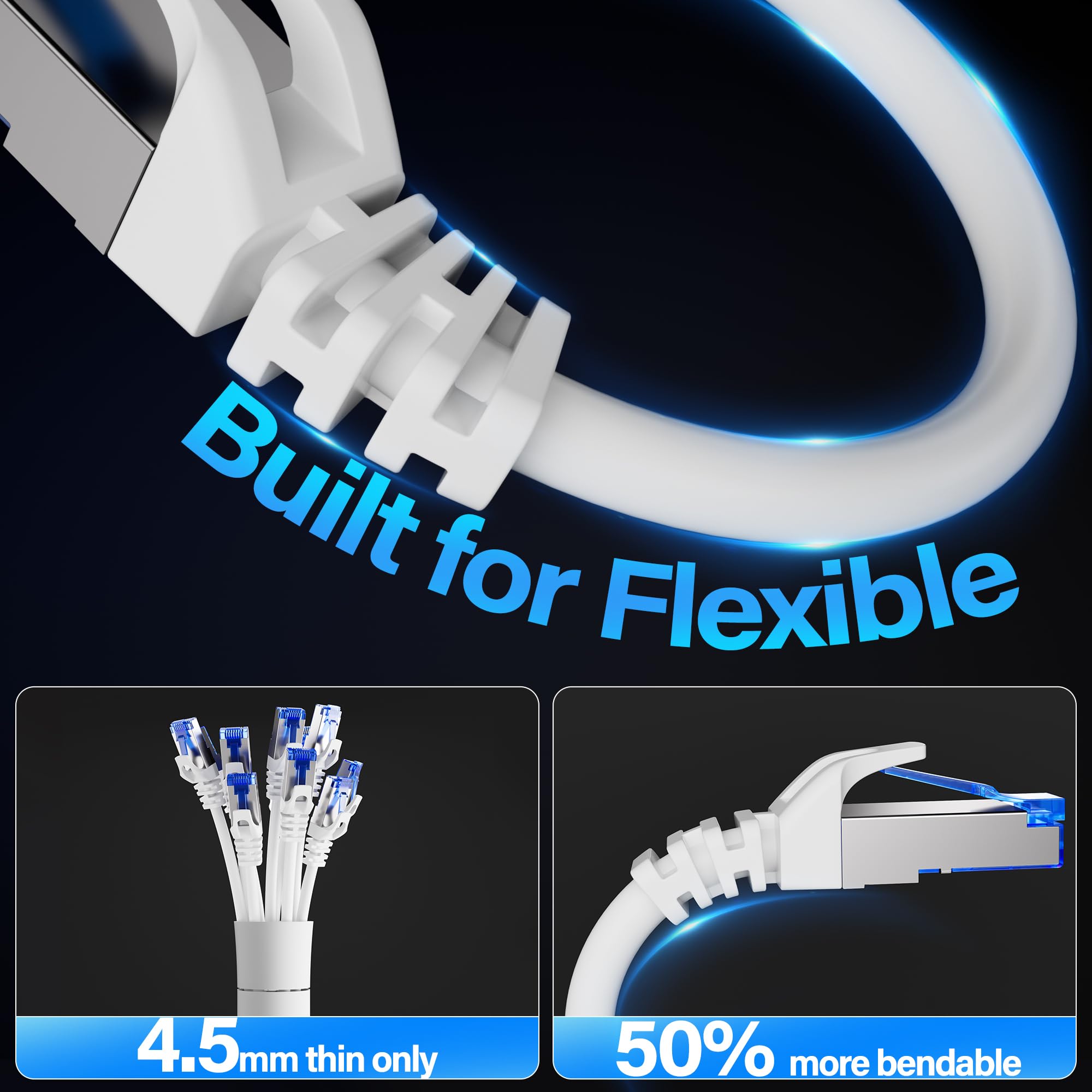 【Ultra Flexible】: Cat6a patch cable is 50% more bendable than standard cat6a cable with only 4.5mm diameter. Cat6 a cable is slim design, which is more flexible than standard cat6 ethernet cable 3 ft, allowing easy to bend for smoother installation behind walls, under carpets, or in crowed conduits.