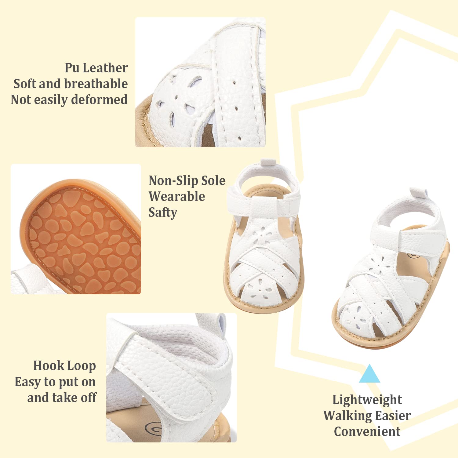 HOOK LOOP: Easy to put on, and easy off with hook loop closures on ankle strap, it can easily adjust the size and fit. Still stay on your baby’s feet