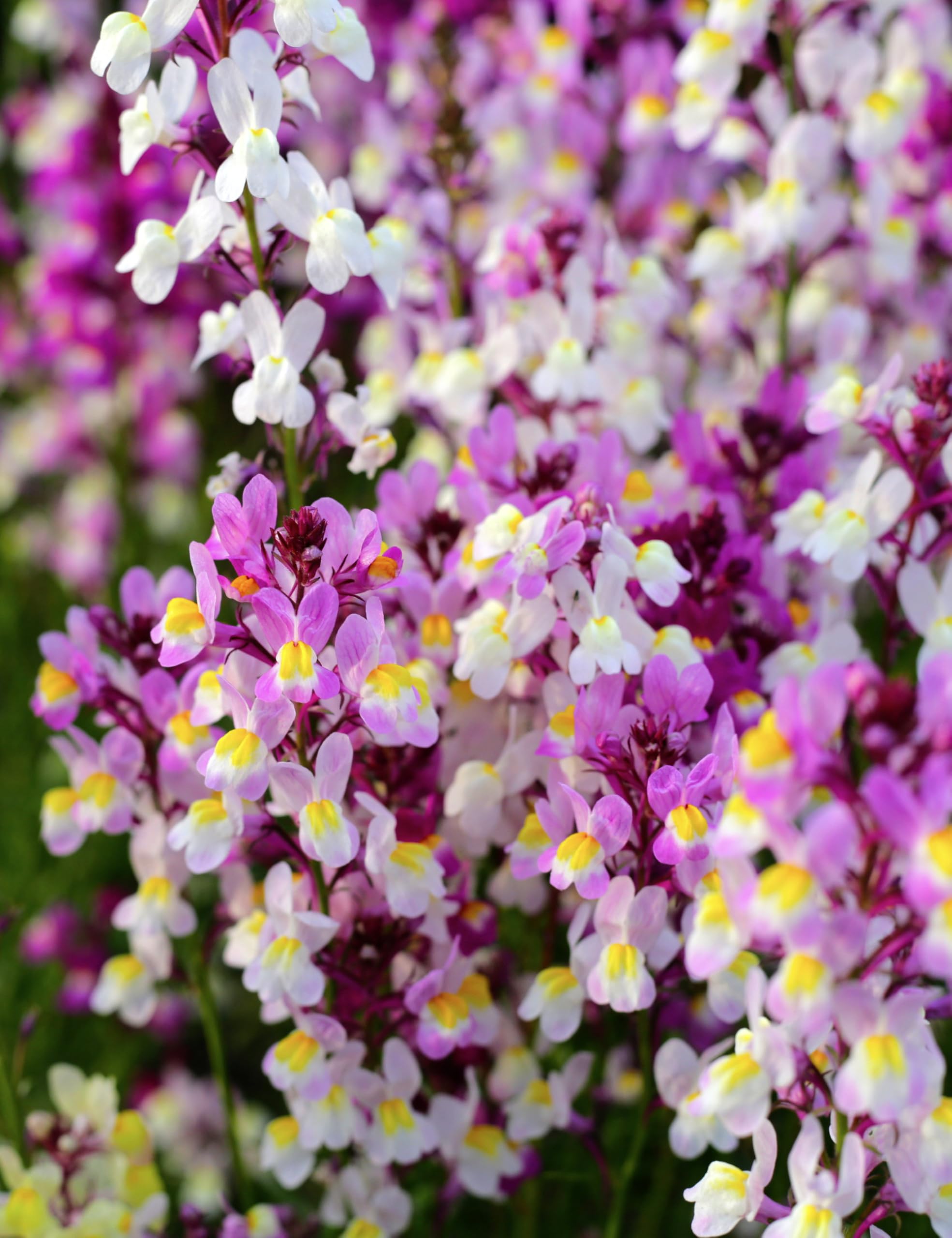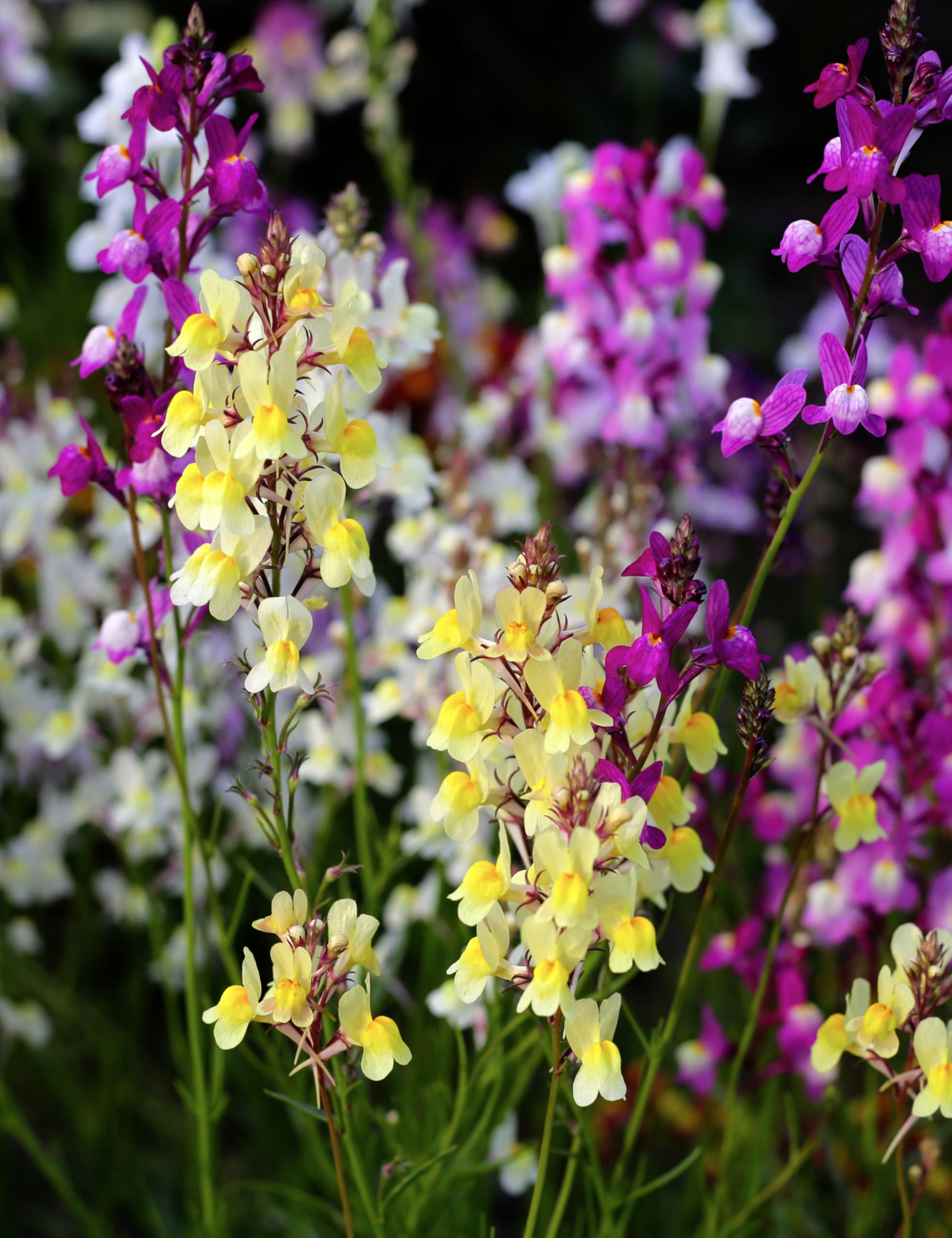Delicate Colorful Blooms: Fairy Bouquet Snapdragons (Linaria maroccana) produce vibrant flowers in pink, purple, white, and yellow, creating a charming, fairy-tale-like display.