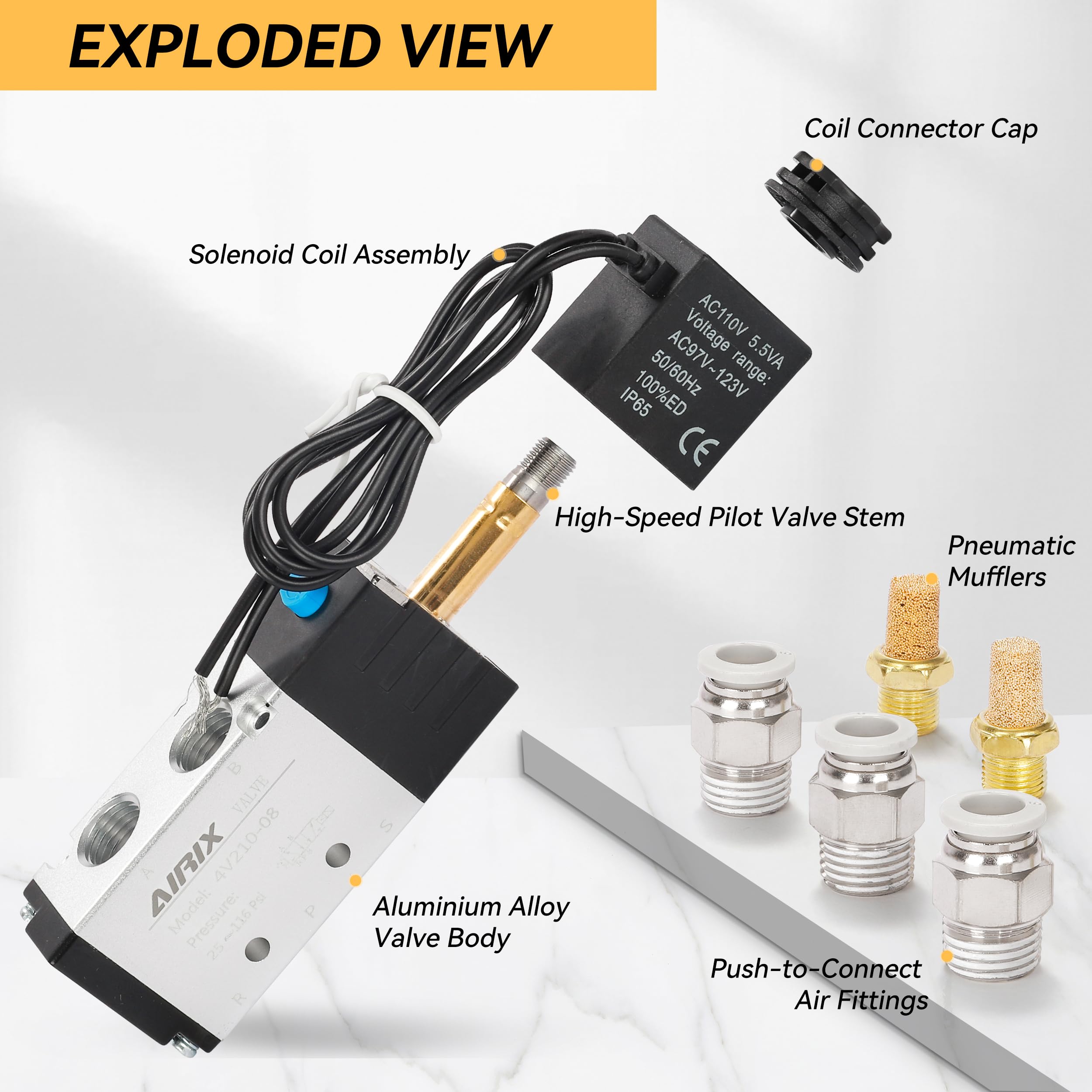 🔹 【Precision Air Control – 4V210-08 Valve】 Designed for pneumatic and automation systems, the AIRIX 4V210-08 solenoid valve offers reliable 2-position 5-way flow control. Ideal for regulating directional airflow in industrial applications with high repeatability.