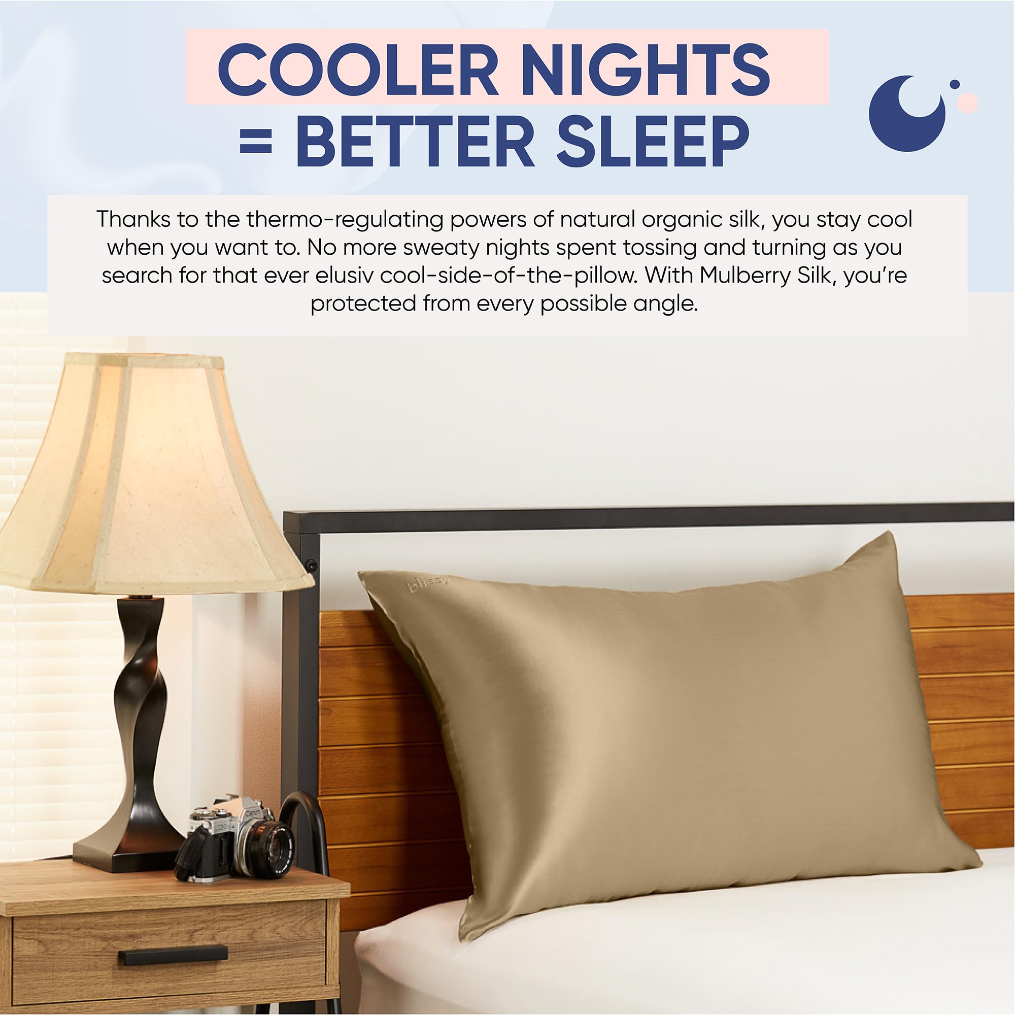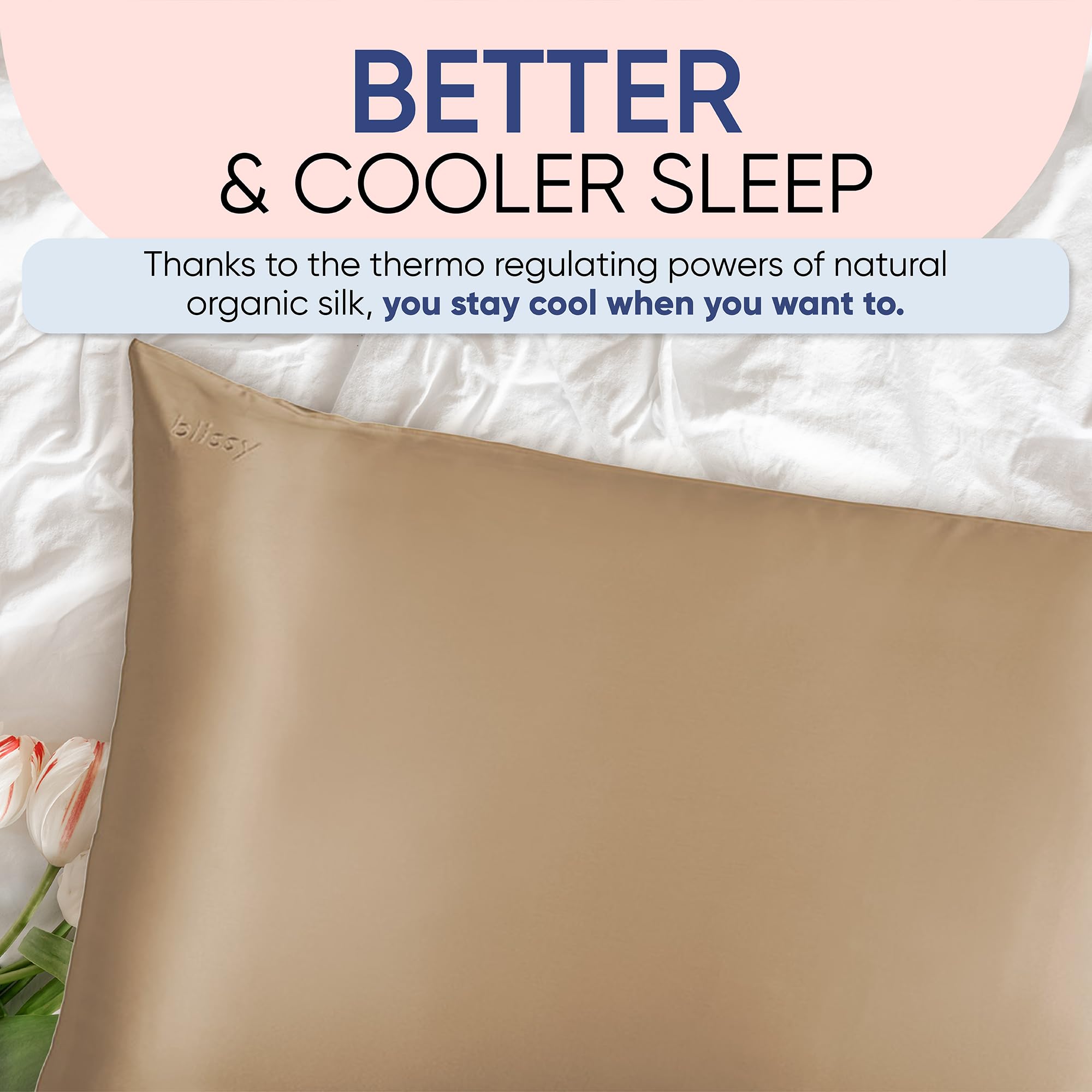BETTER & COOLER SLEEP: The temperature regulating properties of the Blissy silk pillowcase allow you to keep cool at all times during the night without the discomfort associated with fluctuating temperature and the constant tossing and turning for a restful night sleep.