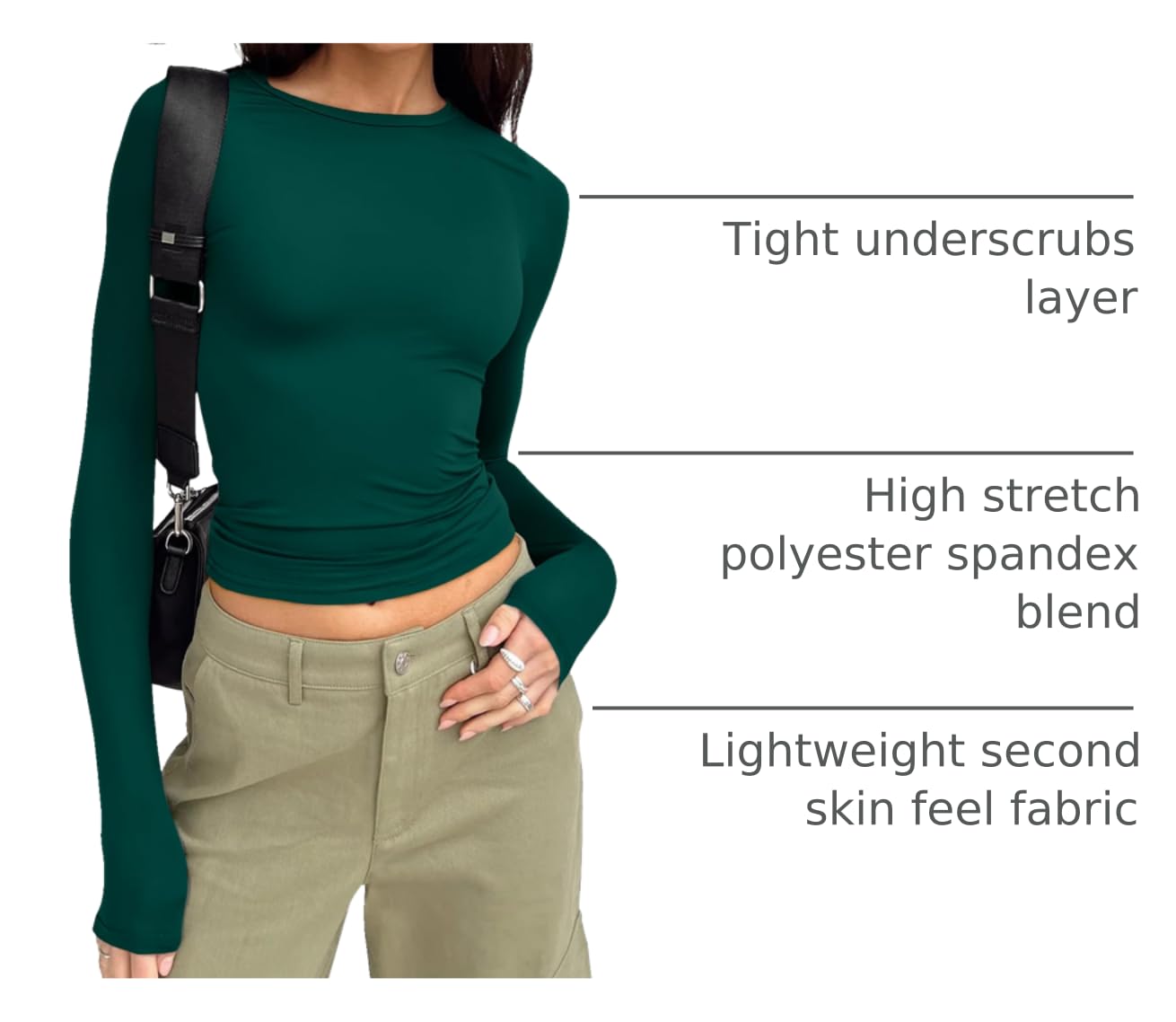Design: Cropped and stretch fitted style,crew neck, tight underscrubs layer,you can wear it regularly or fold it up like a crop top,cute,slim fit,casual y2k style fashion