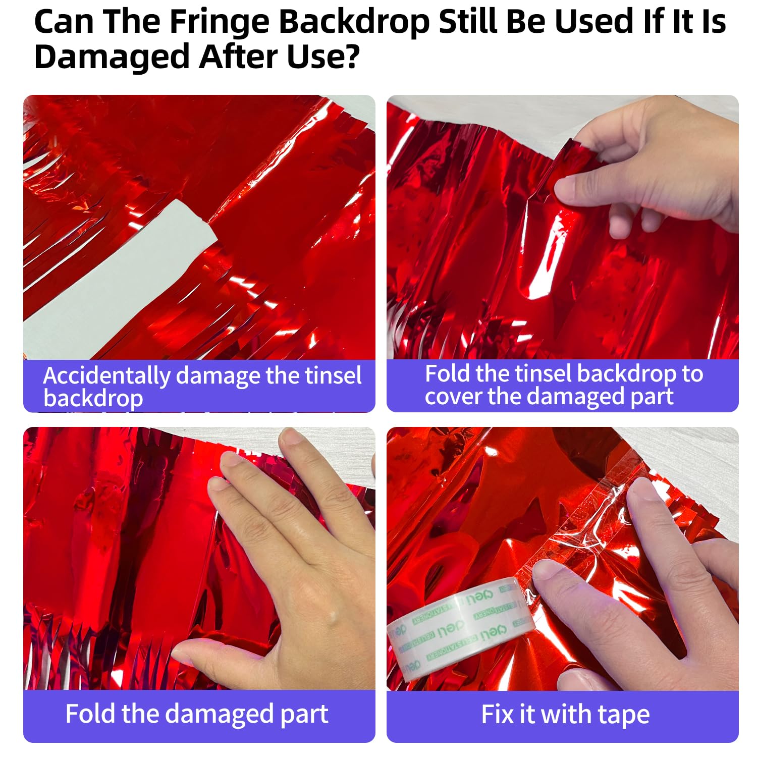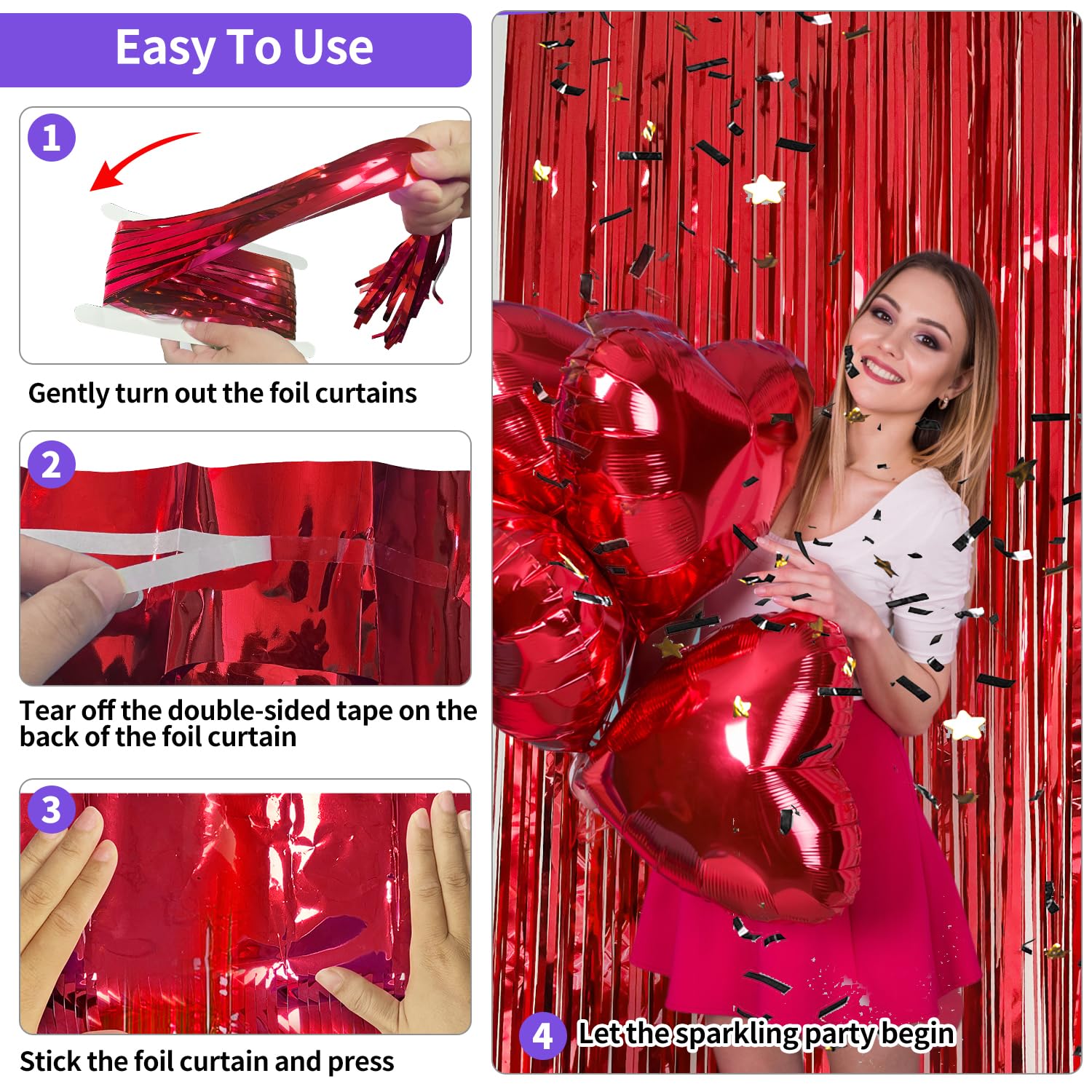 Easy To Use: Red foil fringe curtains party decorations are prepared with double-sided tape on the back side, making it easy to stick them to a flat and clean surface, and cut them to desired length. Get a unique effect by overlapping different curtain