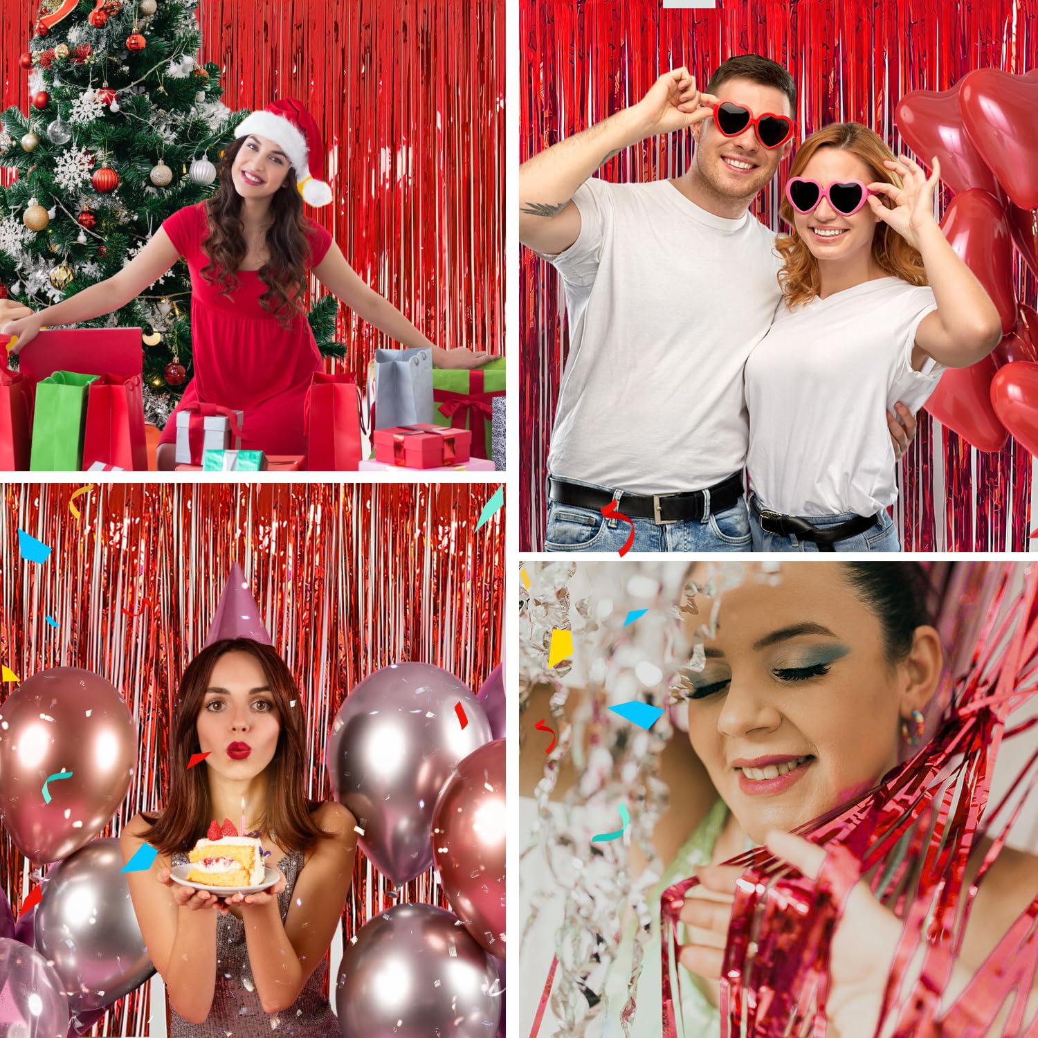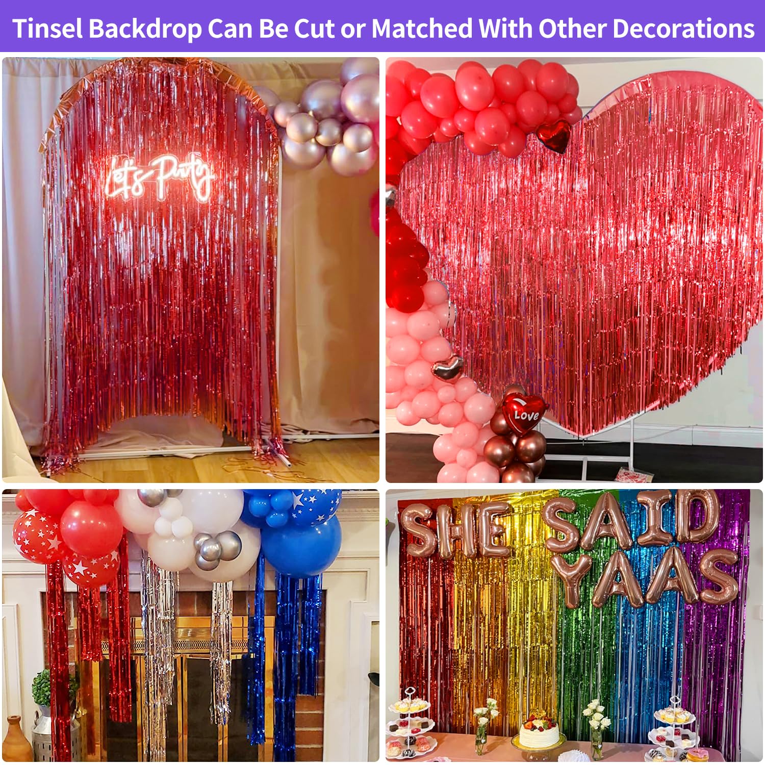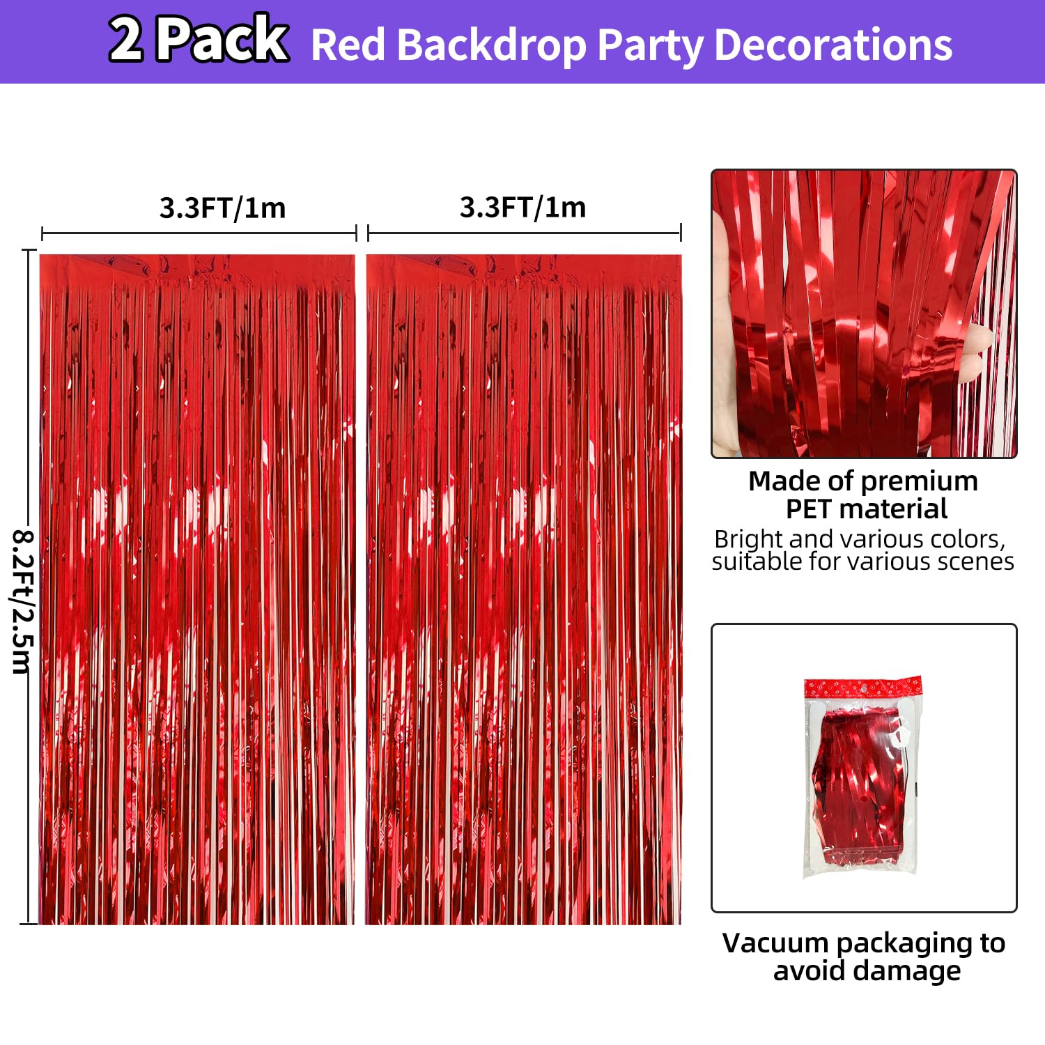 Red Birthday Decorations: Two tinsel backdrops are vacuum sealed to protect backdrop from breaking during shipping. One red backdrop measures 3.3x8.2ft, making it easy to add some fun to party decorations, perfect for all occasions