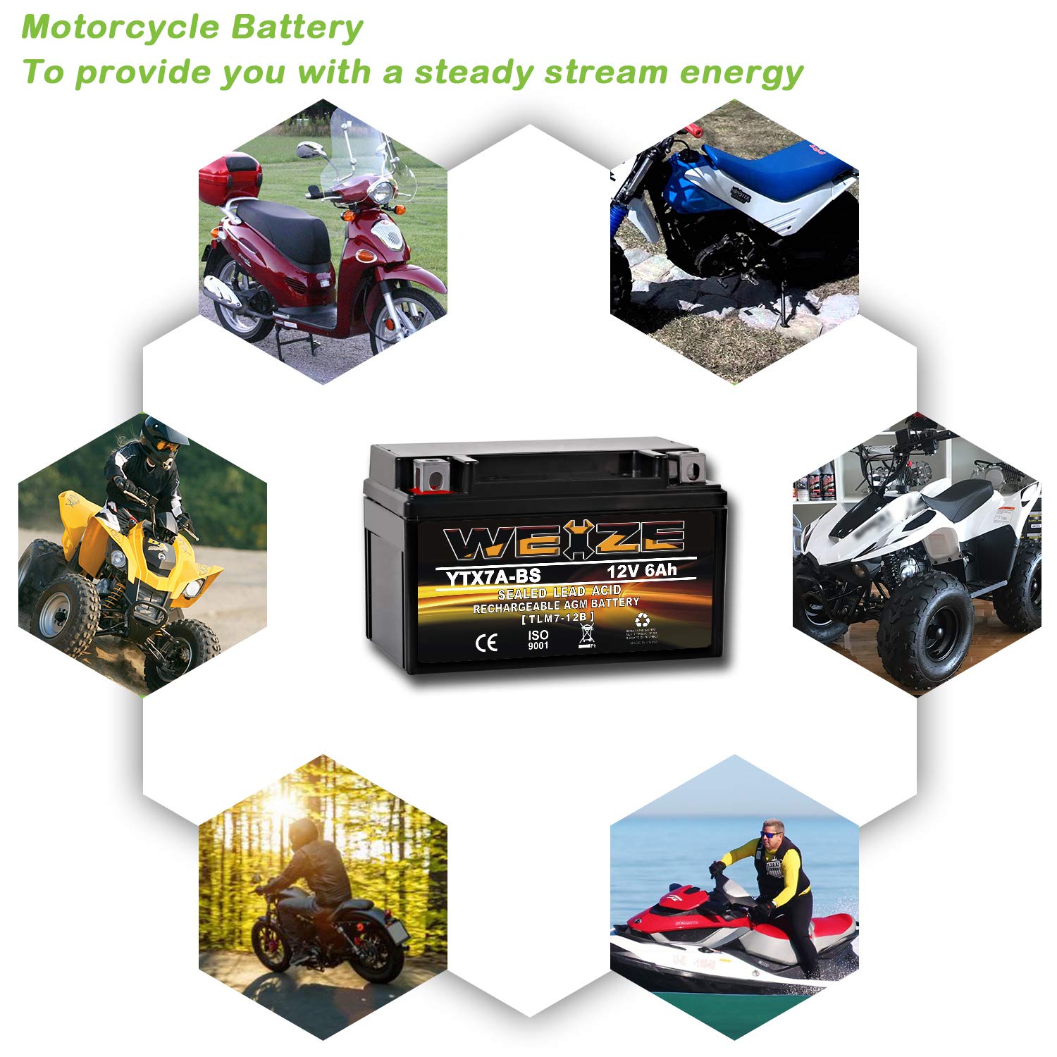 Premium quality absorbed glass mat technology (AGM) is ideal for ATVs, motorcycles, personal watercraft, jet ski's, snowmobiles and more.