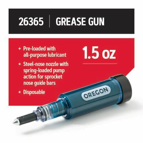 Includes: 1 x Oregon Grease Gun for Chainsaws, pre loaded all purpose lubricant