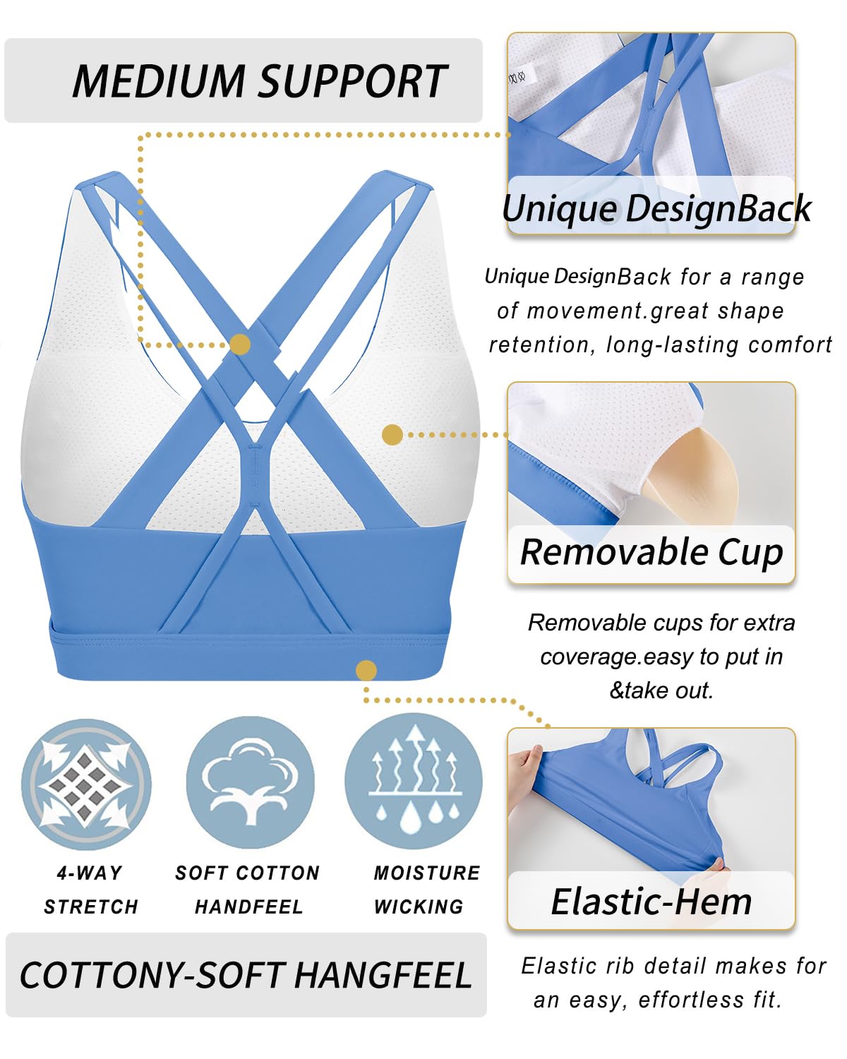CRISS-CROSS BACK FULL COVERAGE DESIGN:Sexy back bringing more attention to the crisscross double strap back feature.Elastic Double Strap Bra features a sultry full coverage and double layer fabric for enough added support.Stretch Fit Sports Yoga Gym Bra Push up & Padded with removable pads for convenient adjustment, with a cotton-like meterial, soft and comfortable to wear.
