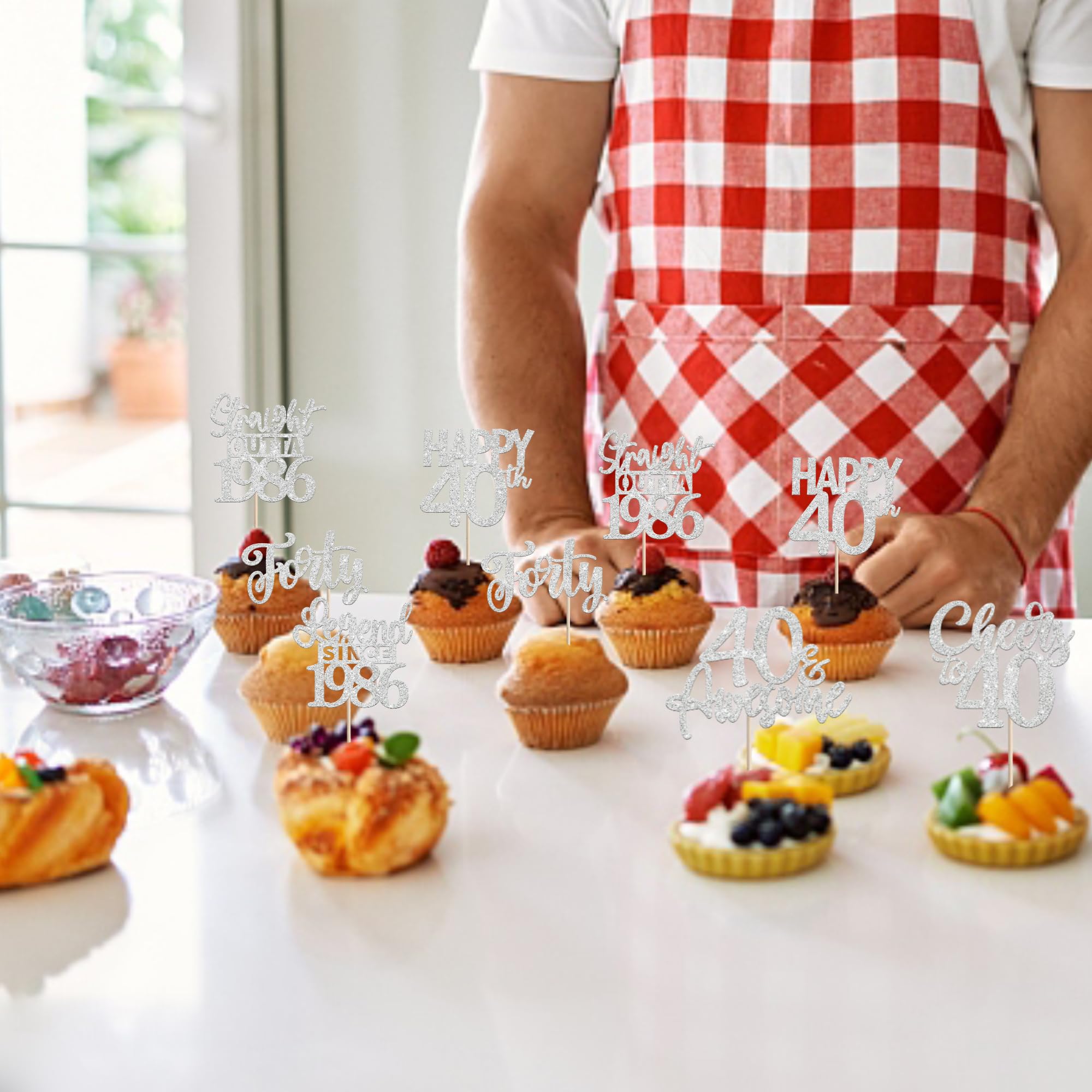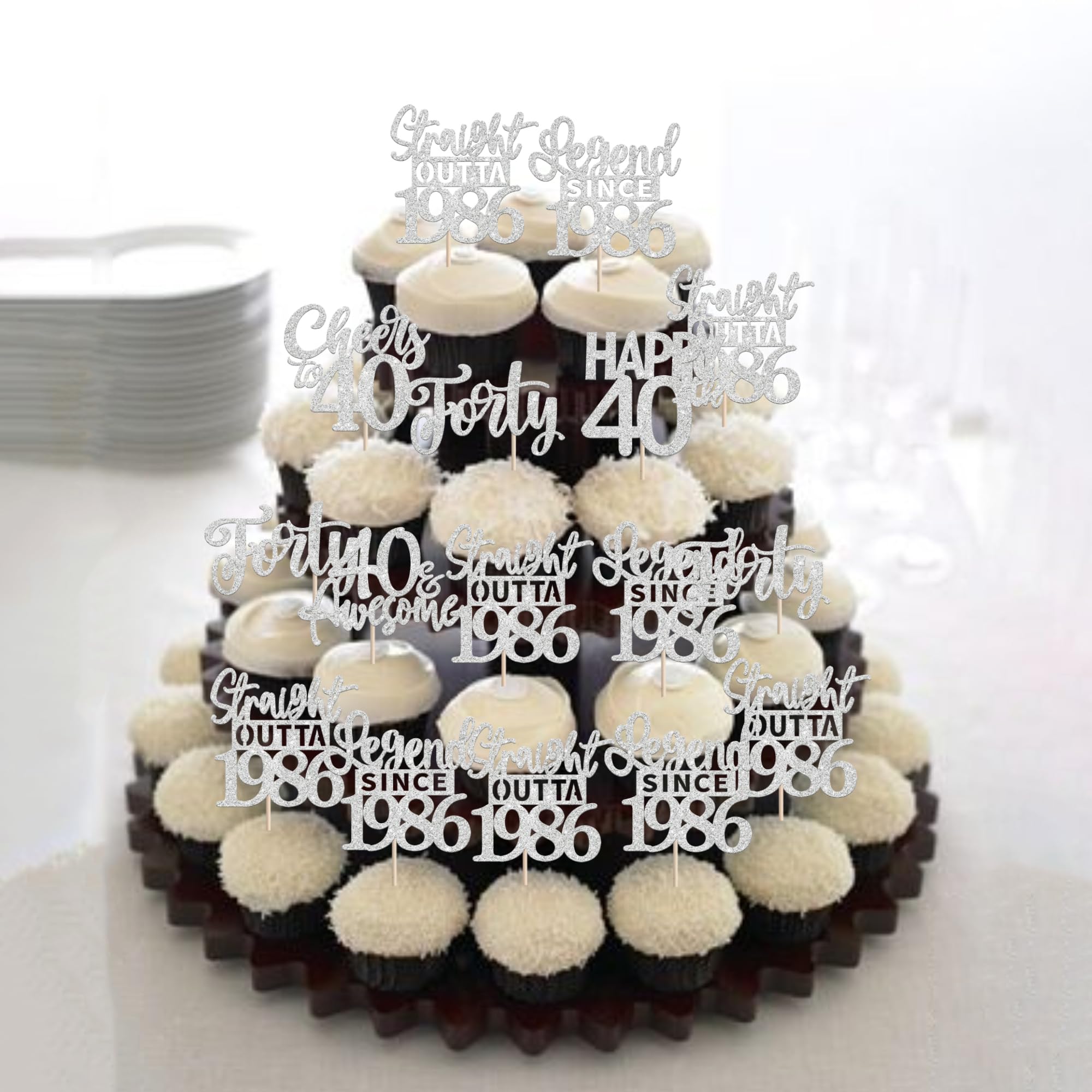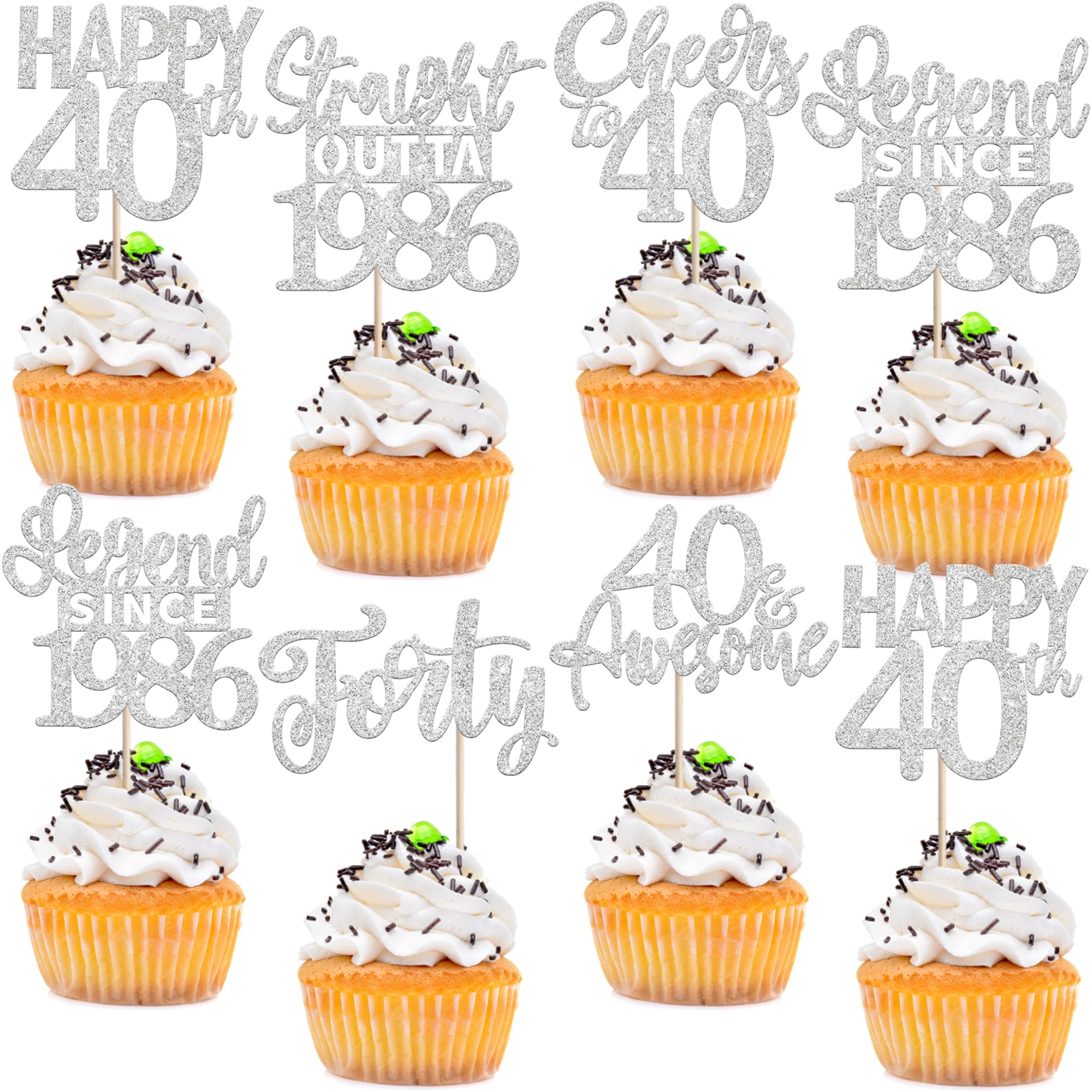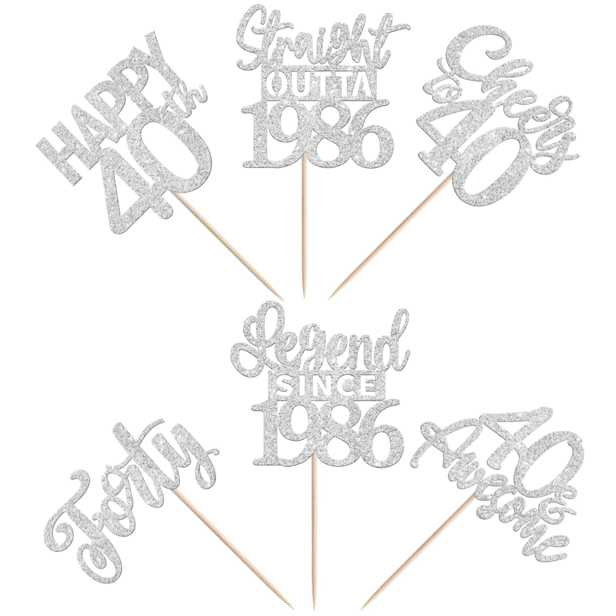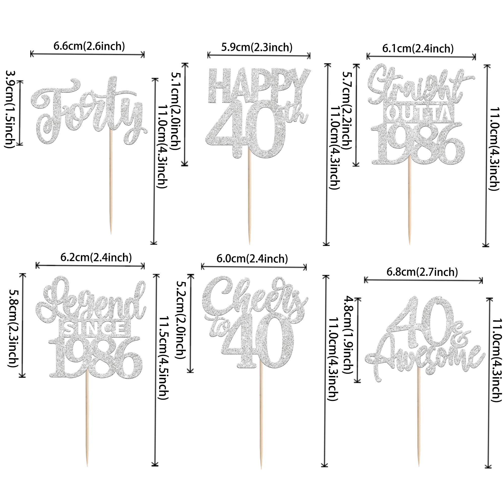 24PCS Happy 40th Birthday Cupcake Toppers Forty Straight Outta 1986 Cupcake Picks Cheers to 40 Birthday Decorations Lengend Since 1986 Cupcake Decorations for 40th Birthday Anniversary Party Cake Decorations Supplies Perfect for legend since 1986 theme party, 40th anniversary theme party,cheers to 40 years theme party, 40 awesome theme party cupcake decorations supplies. Pack of 24 pcs,4 pcs of each design. The size is 2.6*4.3/ 2.3*4.3/ 2.4*4.3/ 2.4*4.5/ 2.4*4.3/ 2.7*4.3 inch ( with stick ) Made of high quality paper card stock,thick and sturdy. These straight outta 1986 cupcake toppers are one side glitter, another side is white, and they are intended for decoration only, please do not put them in oven or microwave. If the item you received has any defects, please contact us immediately.we will deal with it within 24 hours.