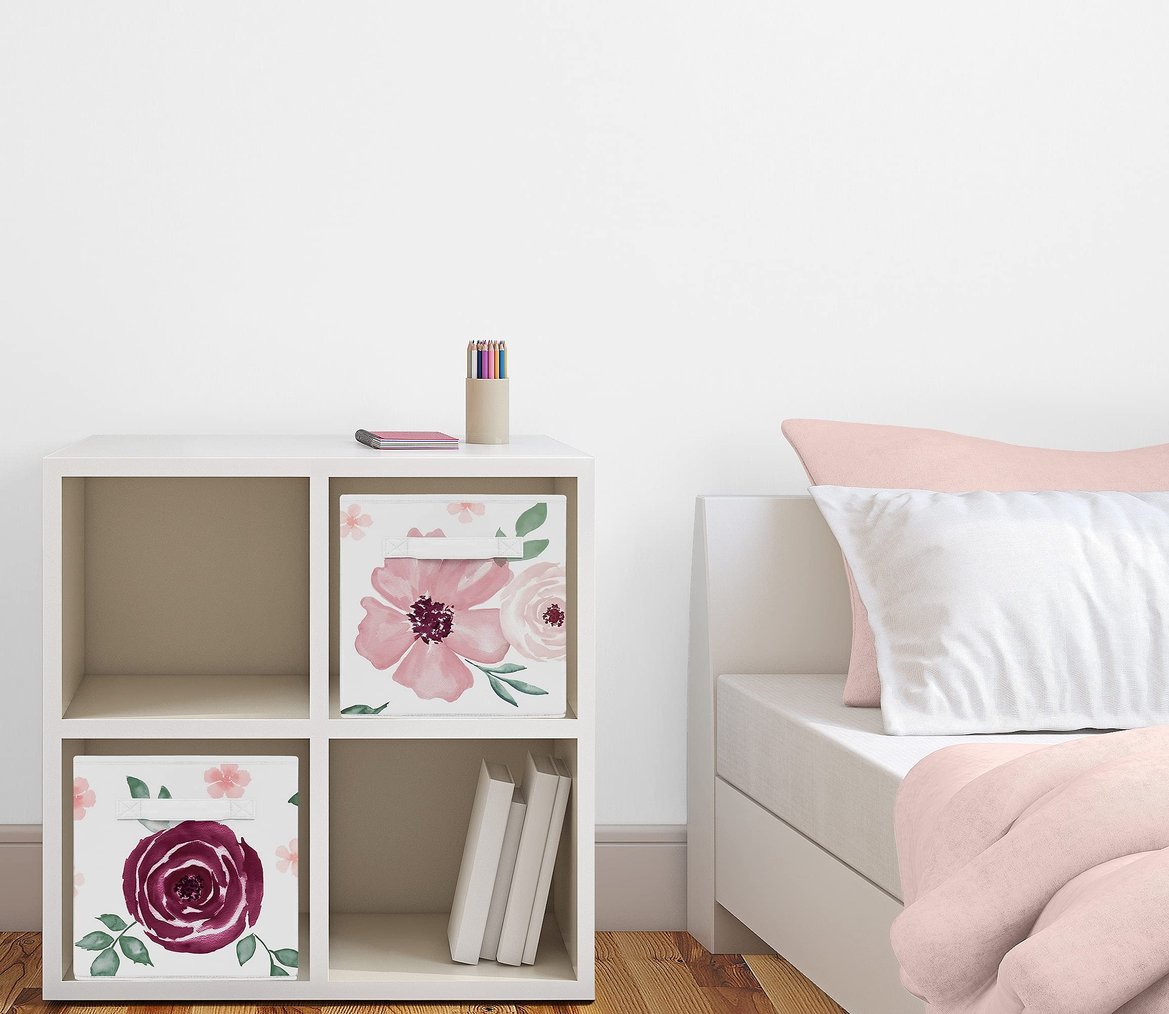 Reinforced fabric handles allow bins to easily slide in and out of most standard cube shelving