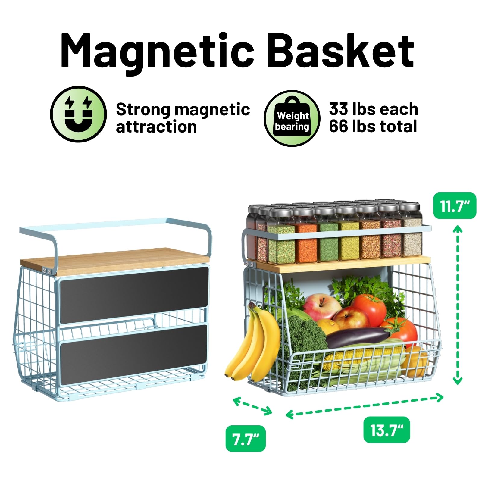 【MAGNETIC FUNCTION】This Capable of supporting up to 15kg of weight. The magnetic suction feature allows the shelf to be easily attached to any metal surface, such as a refrigerator or a metal shelf, without the need for any additional support. This makes it ideal for use in small kitchens or other spaces where storage is limited. They can easily hold a variety of items, including fruits, vegetables, utensils, and other kitchen accessories, without bending or breaking.