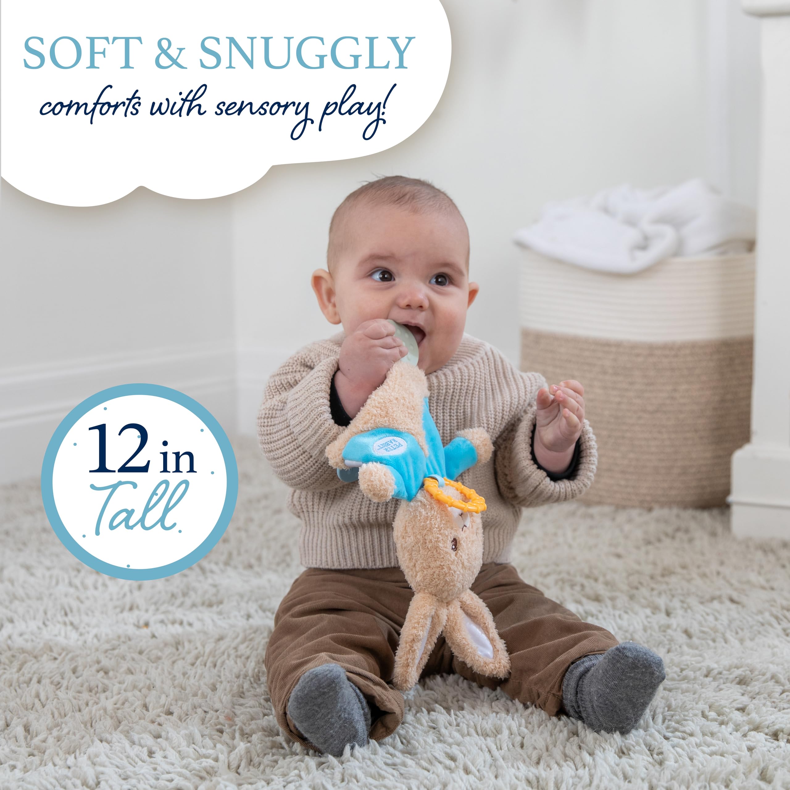 Plush Teether: Help your baby to self soothe with a crinkle teether plushie sized just for infants. A comfy soft Peter Rabbit friend and lovey blanket all in one will give little ones the warm fuzzies!