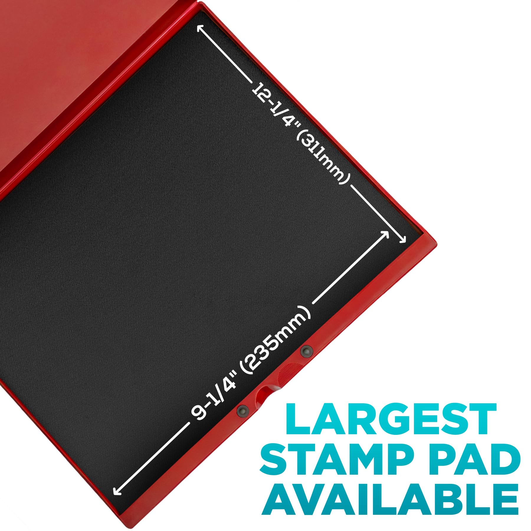 Largest stamp pad available - 9.25" x 12.25” useable area - Great for larger wooden hand stamps and rocker mount stamps