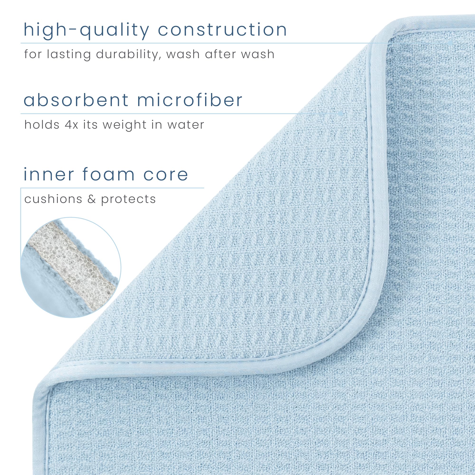 Dish drying mat for kitchen counter protects surfaces from scratches and scuffs when placed under kitchen gadgets; multipurpose drying pads can be used as an appliance slider for a mixer or blender