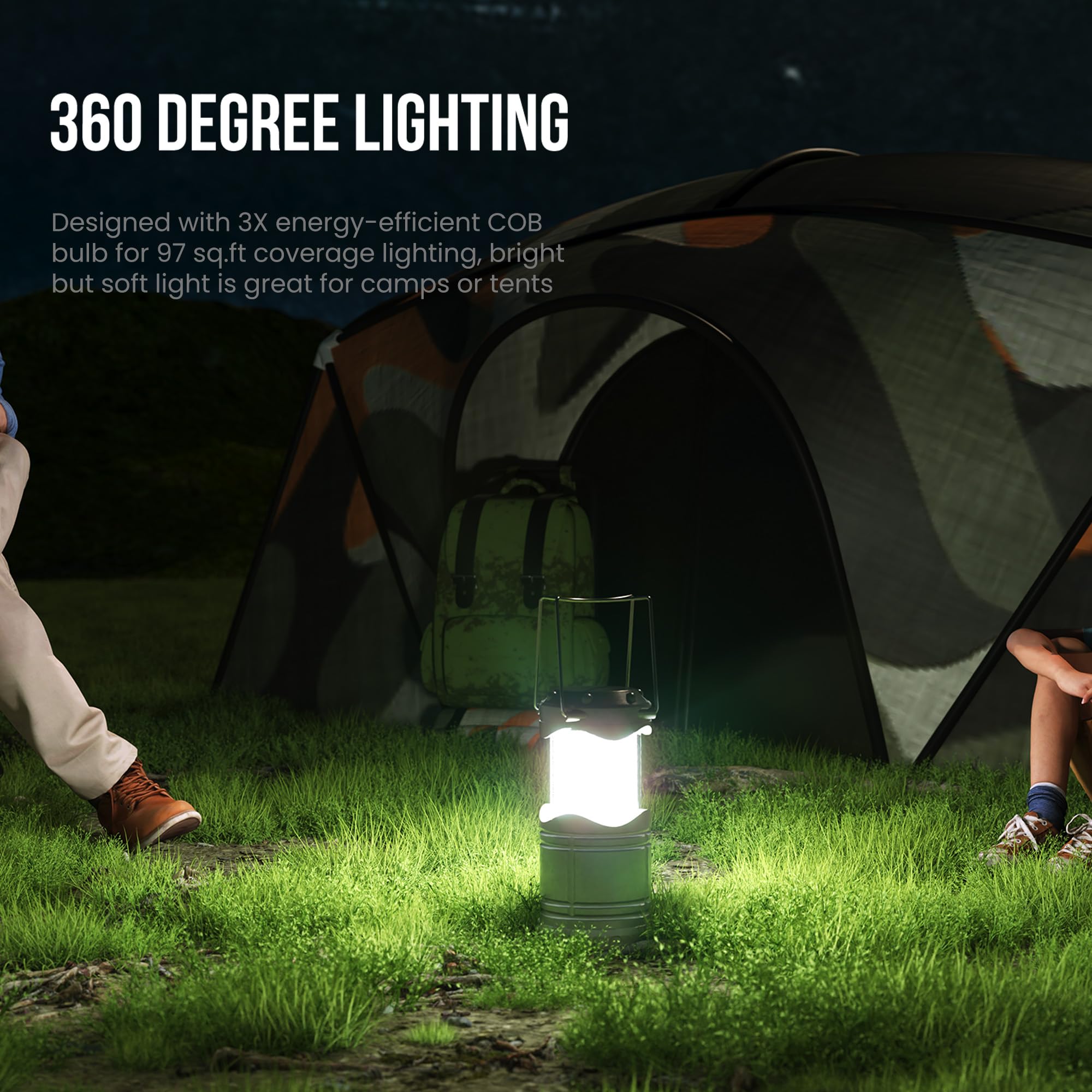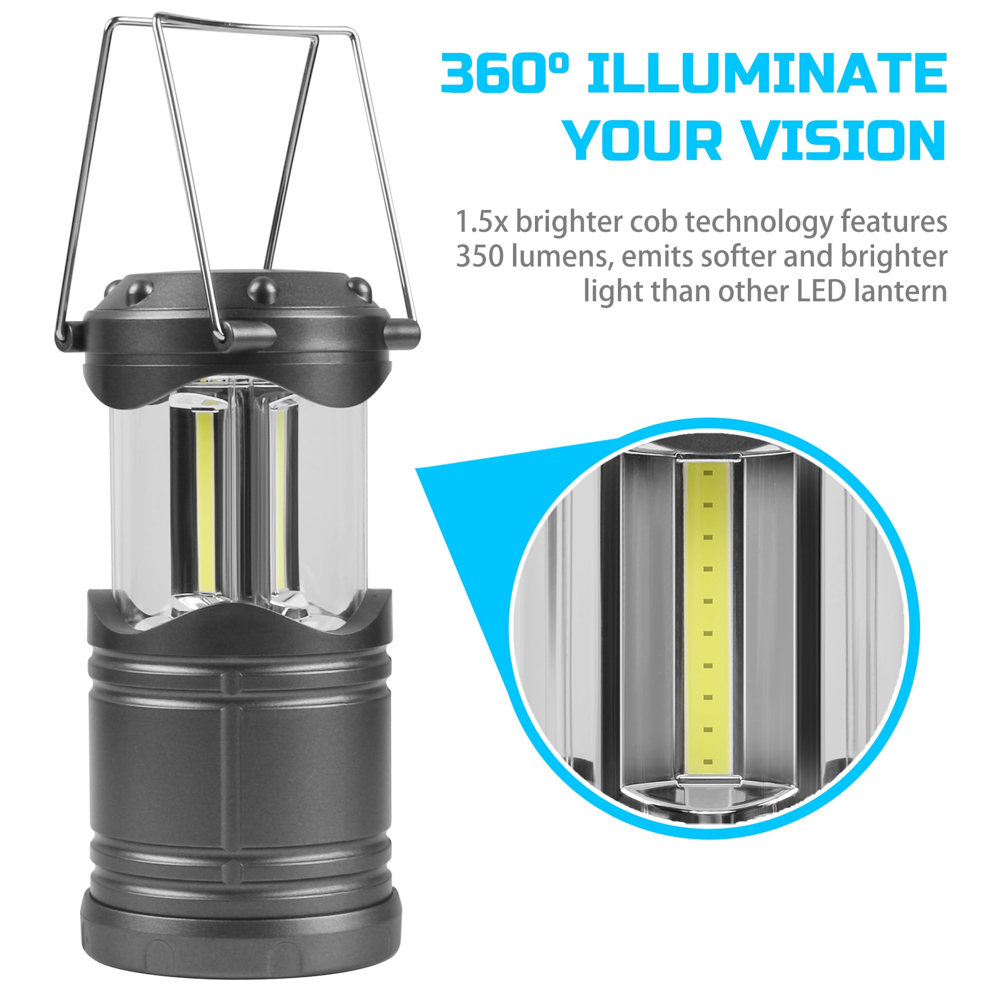 ULTRA BRIGHT & SAFE: Designed with 30 energy-efficient LED for 360 degree lighting (97 sq.ft coverage), the latest COB technology features 350 lumens, emits softer and brighter light than other LED lantern; Use 3 AA batteries (not included)