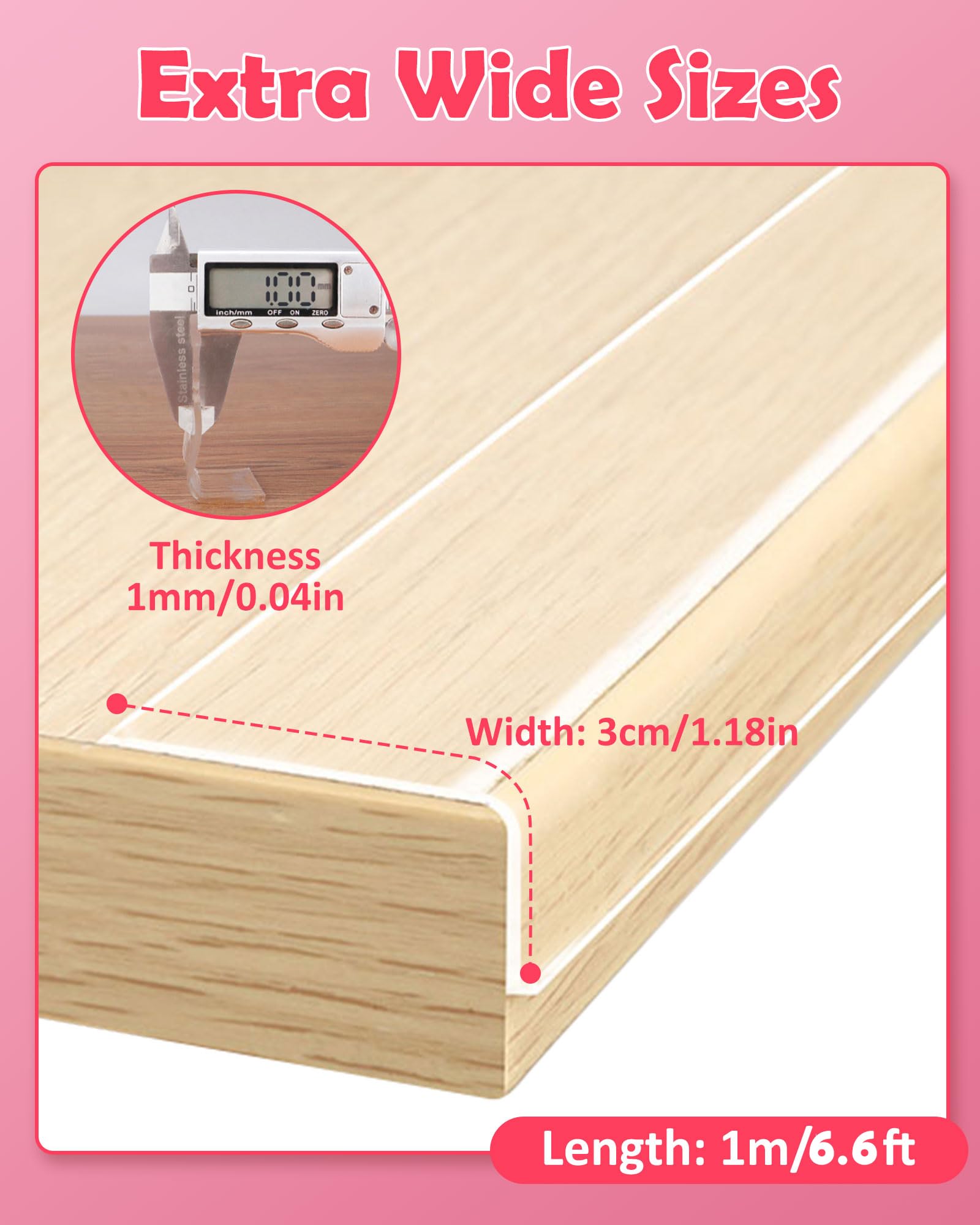 š„³ćSoft and TransparentćThe child safety edge protectoris size 1.2in x 6.6ft, 0.04in thick. Our baby edge protectors are completely transparent to maintain the original appearance of the furniture while providing safety and protection for your baby and child. With a protective edge layer that will not tear easily.